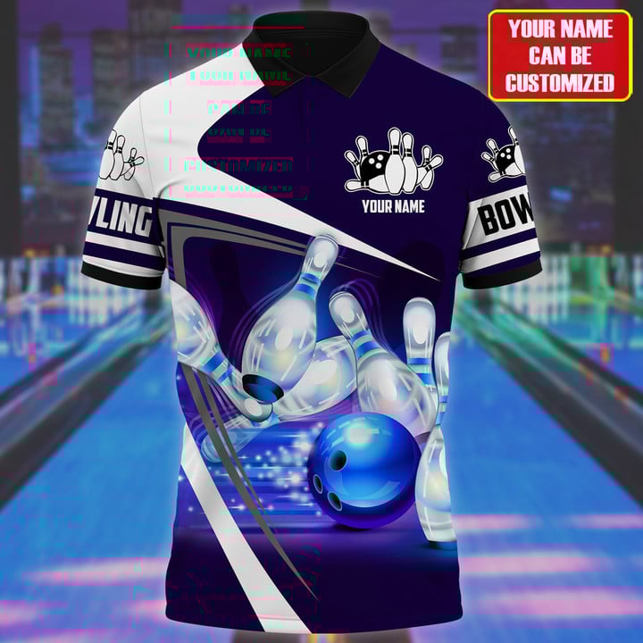 BlueJose Bowling Ball and Pins Multicolor Customized Name 3D Polo Shirt Personalized Shirts For Bowling Players