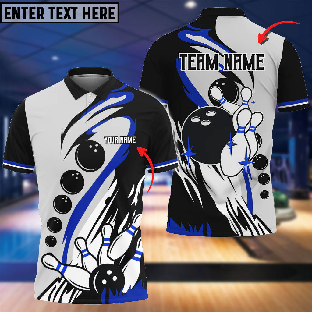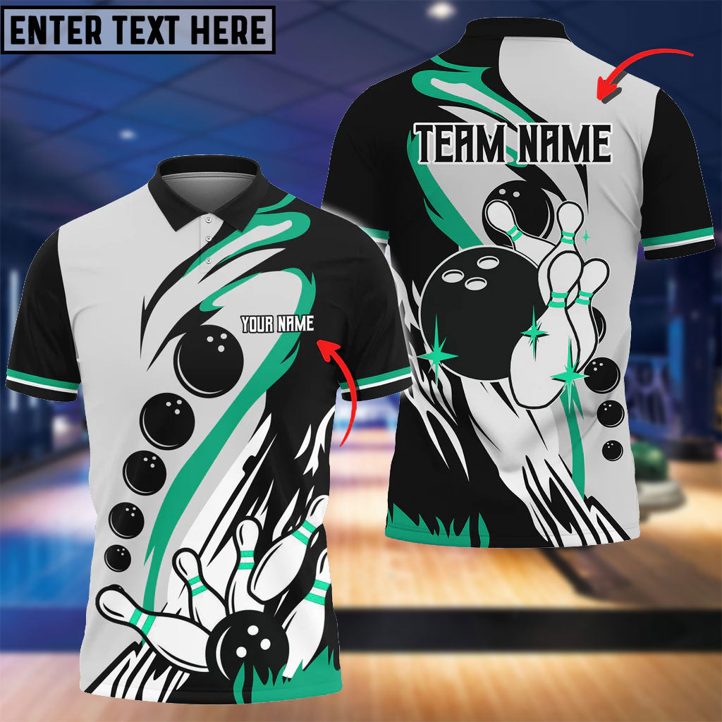 BlueJose Bowling Ball And Pins Wind Rise Multicolor Option Customized Name 3D Shirt (4 Colors)
