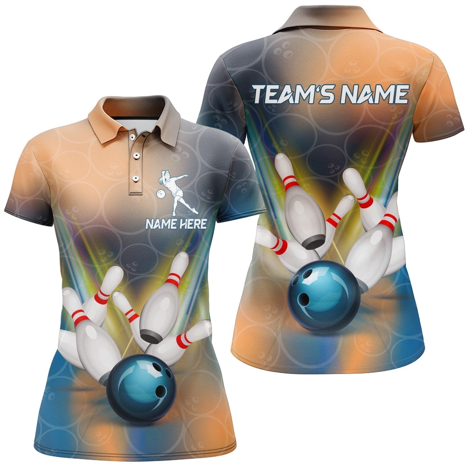 BlueJose Bowling Blue Ball Multicolor Pattern Premium Customized Name 3D Shirt For Women, Personalized Shirts For Bowling Players