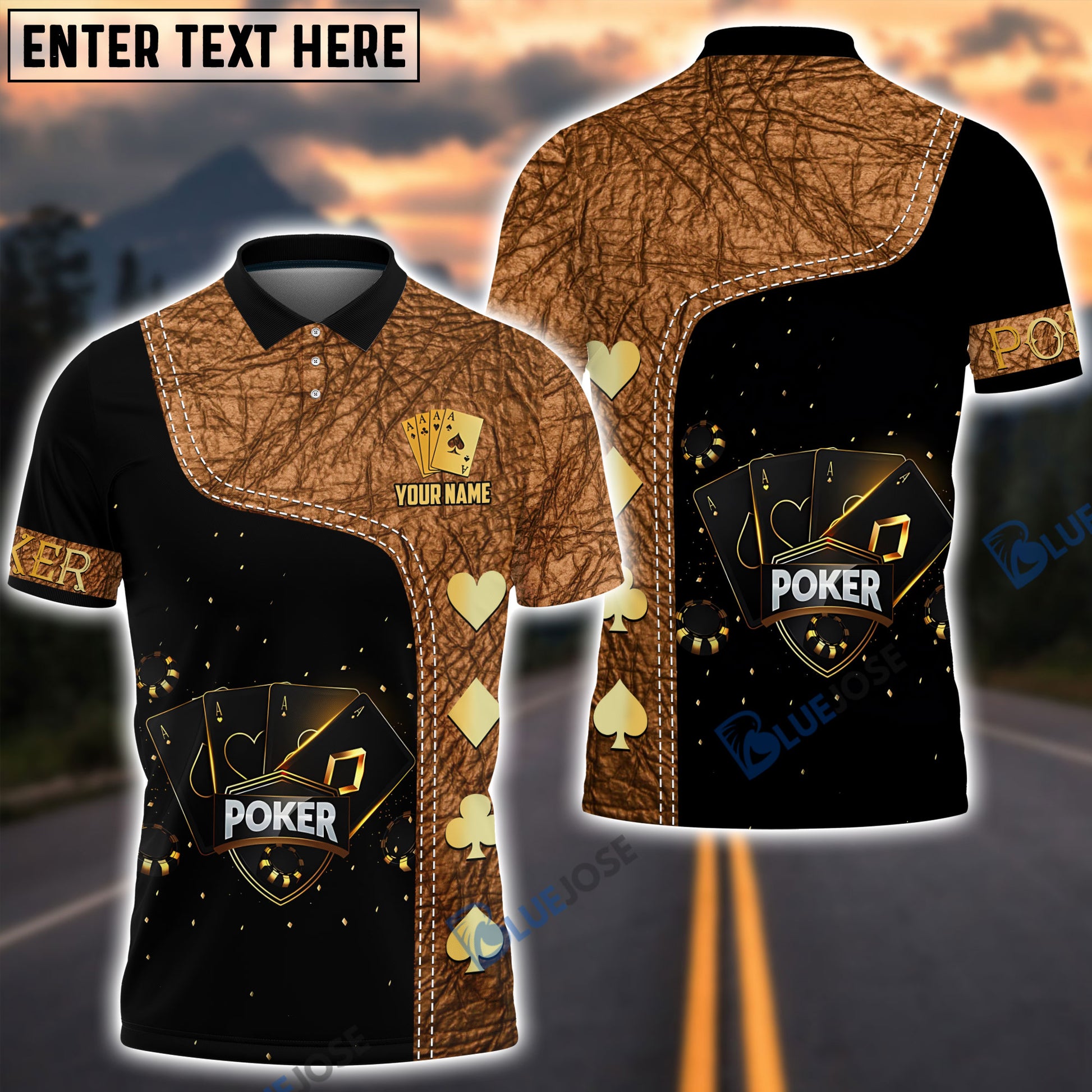 BlueJose Casino Poker Leather Pattern Personalized Name 3D T-Shirt