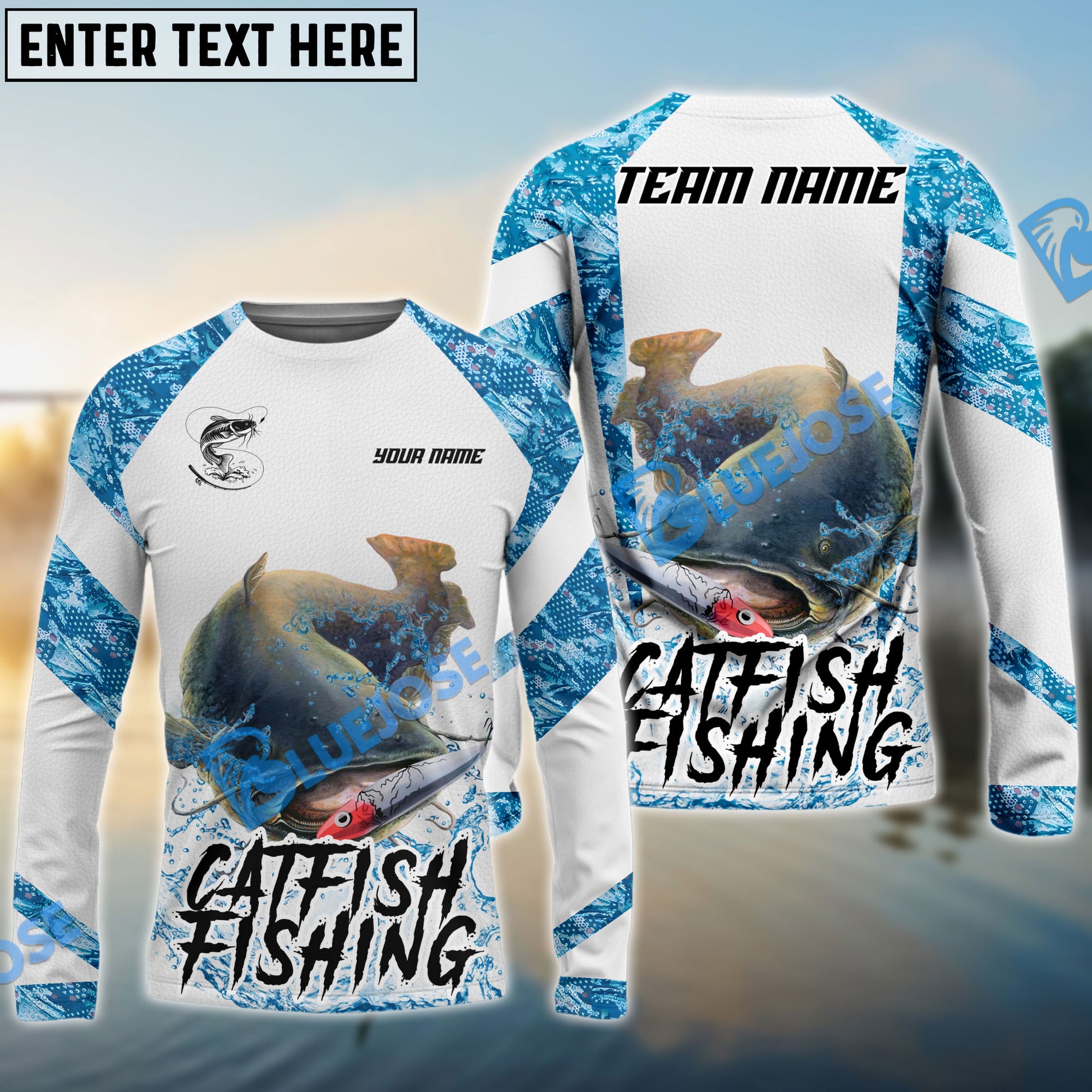 Bluejose Catfish Fishing Blue Camo White Pattern Sport Custom Name & Team Name 3D Shirts