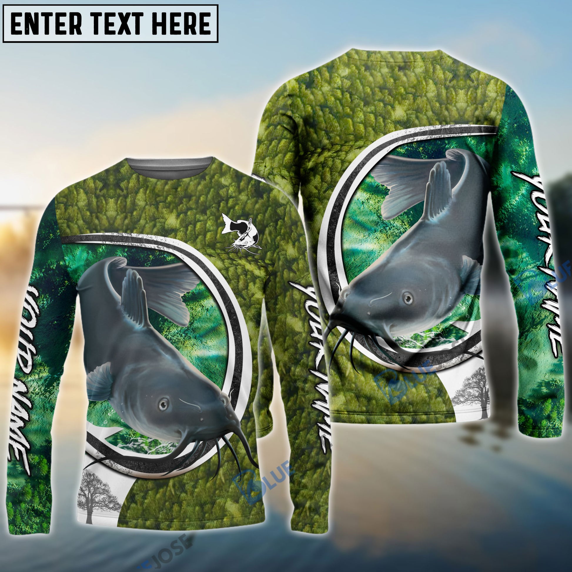 BlueJose Catfish Fishing Hook Green Custom Long Sleeves Fishing Shirt