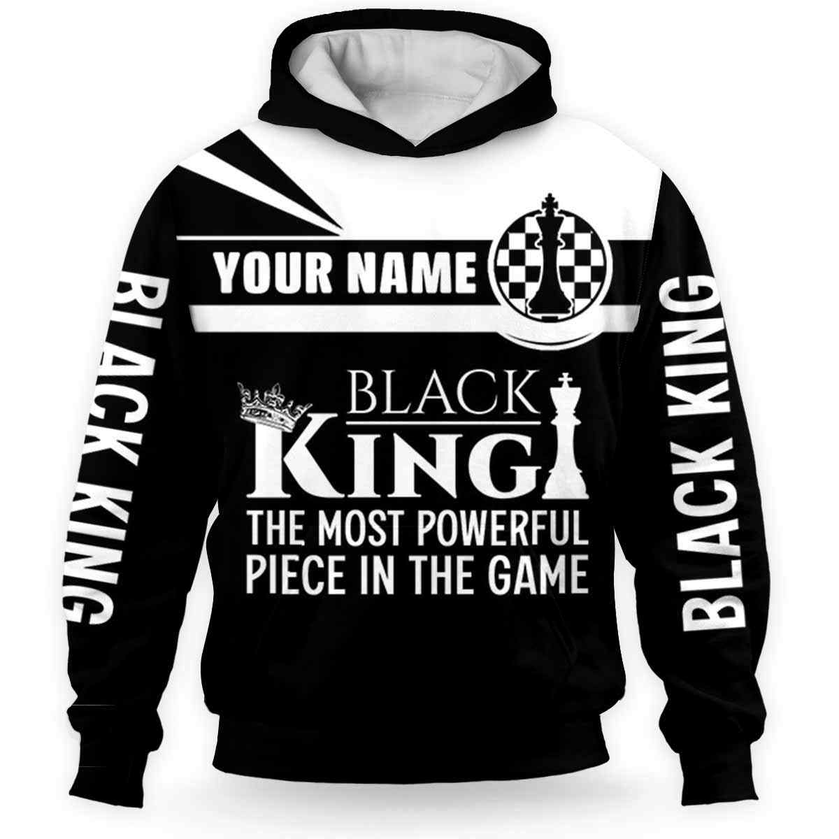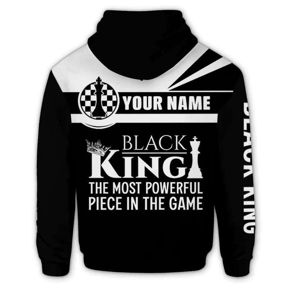BlueJose Chess Black King Powerful Custom Name 3D Hoodie