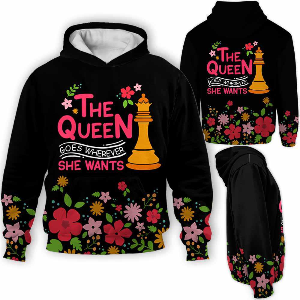 BlueJose Chess Flower Queen Goes Wherever She Wants 3D Hoodie