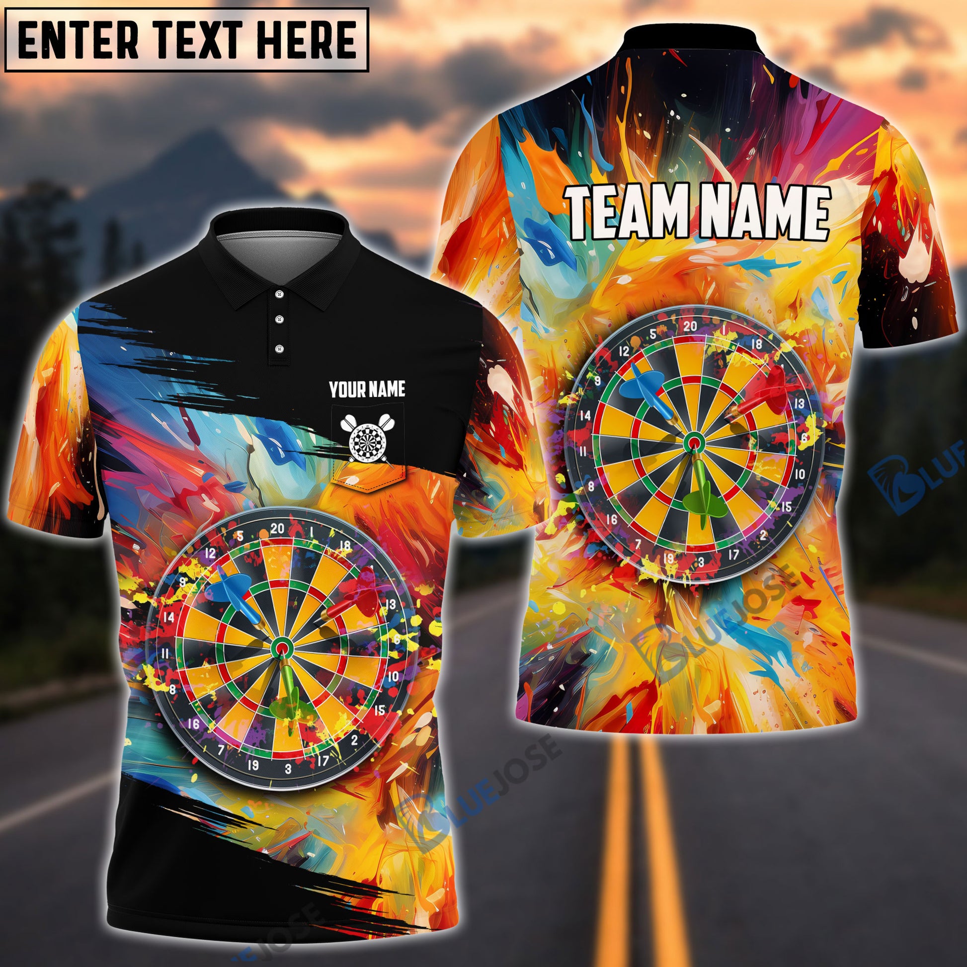 BlueJose Colorful Dart Personalized Name, Team Name 3D Pocket Polo