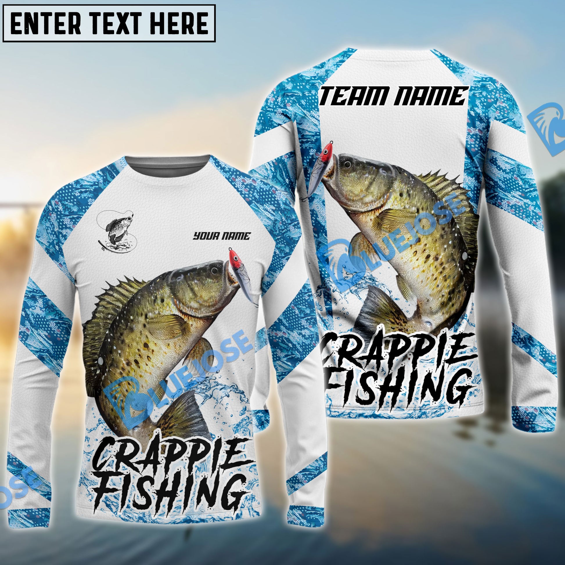 Bluejose Crappie Fishing Blue Camo White Pattern Sport Custom Name & Team Name 3D Shirts