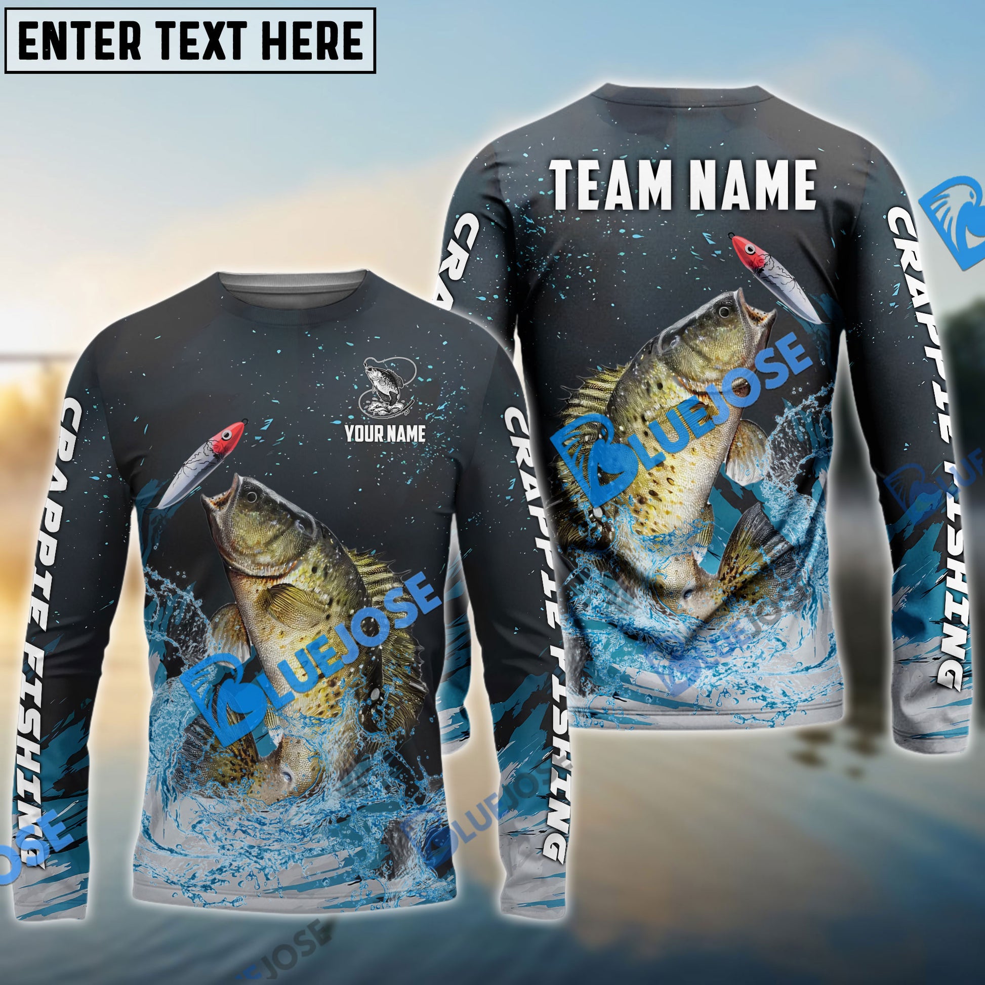 Bluejose Crappie Fishing Dark Blue Sport Custom Name & Team Name 3D Shirts