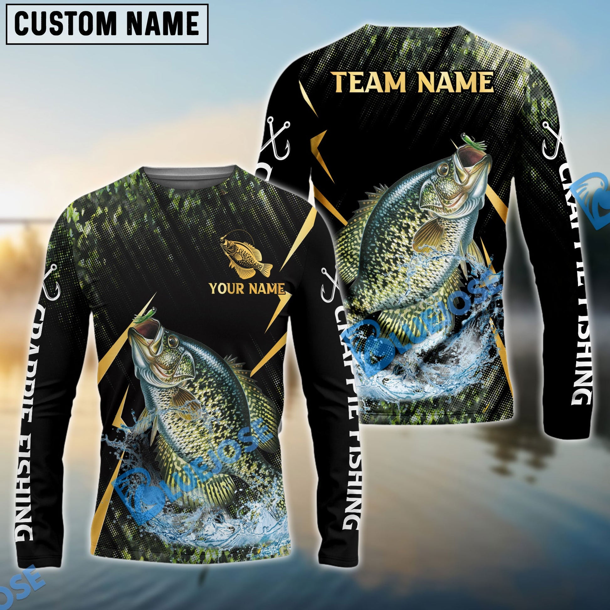 Bluejose Crappie Fishing Golden With Skinfish Pattern Custom Name & Team Name 3D Shirts