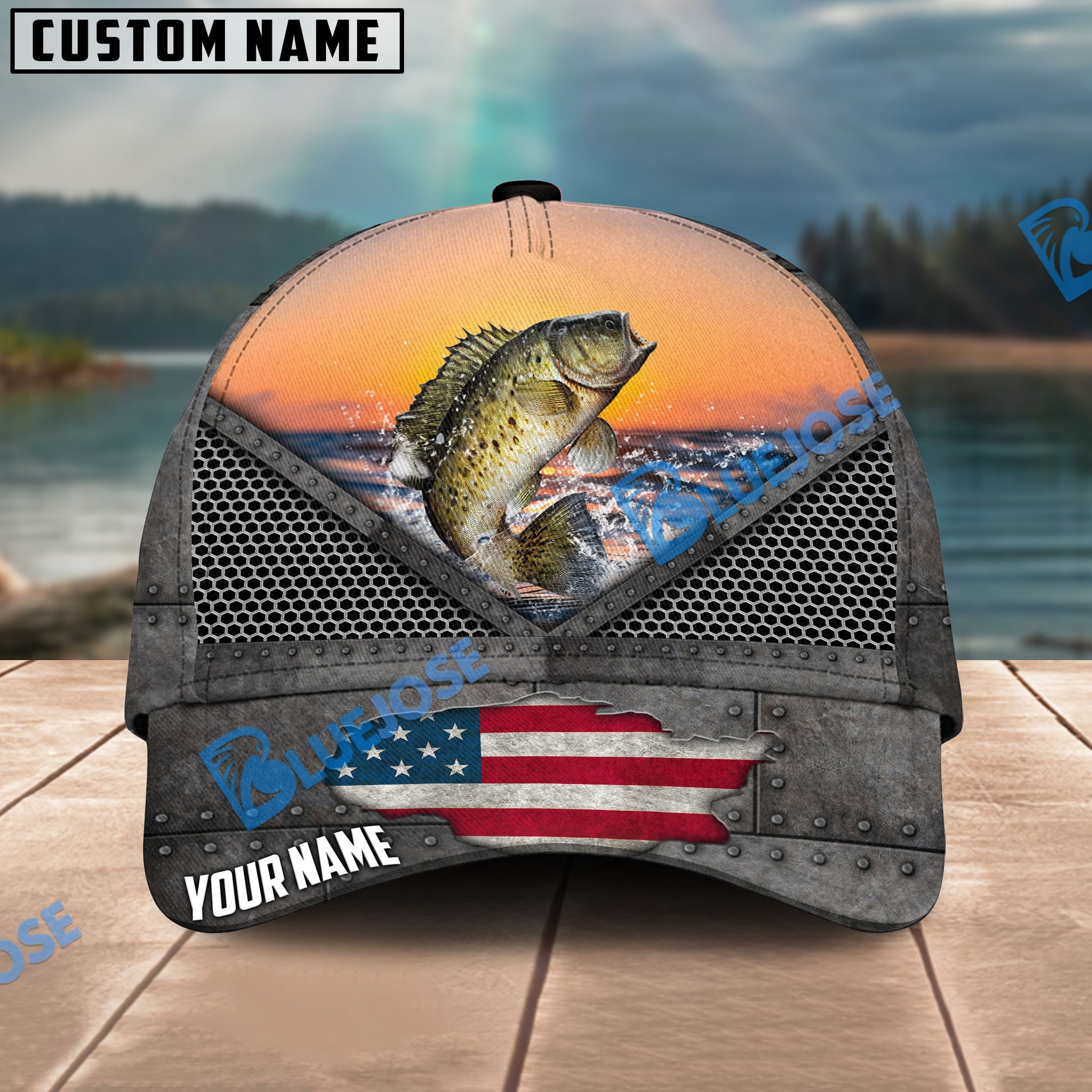 BlueJose Crappie Fishing Sunset Personalized Cap