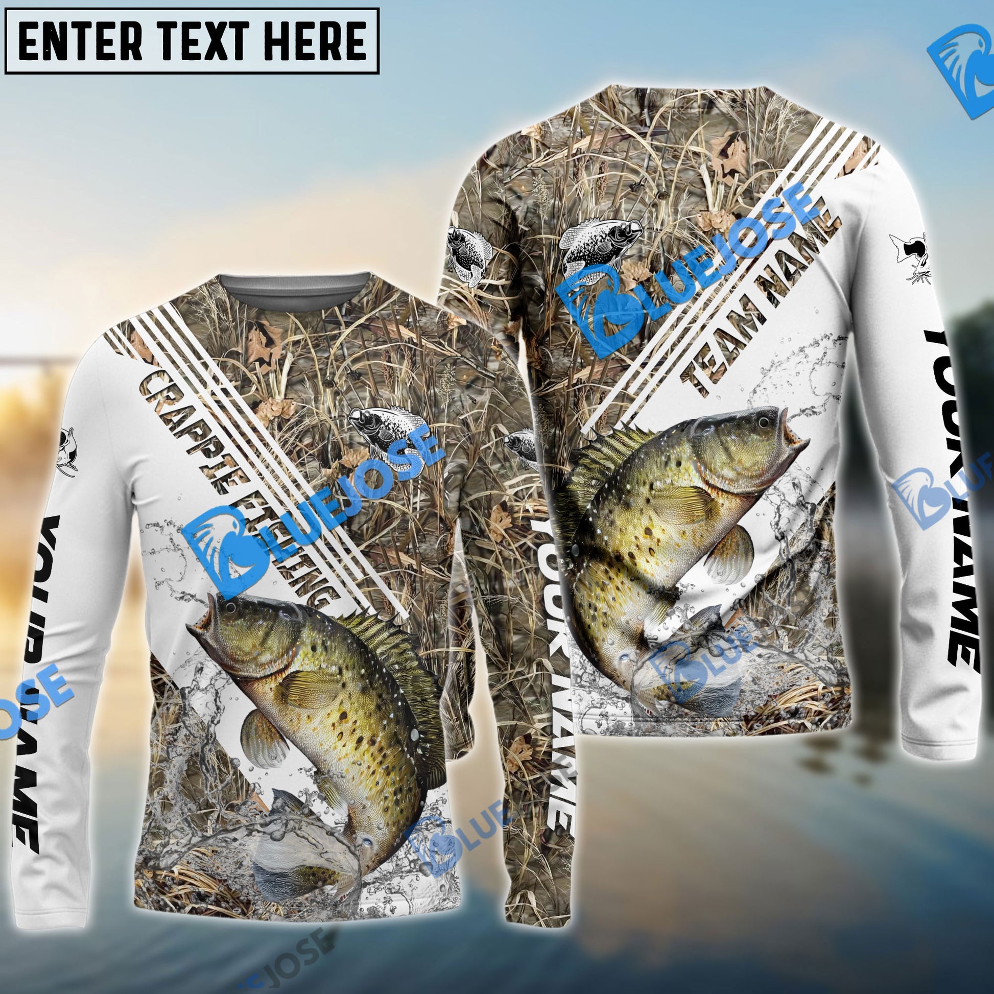 Bluejose Crappie Fishing White And Grass Camo Sport Custom Name & Team Name 3D Shirts
