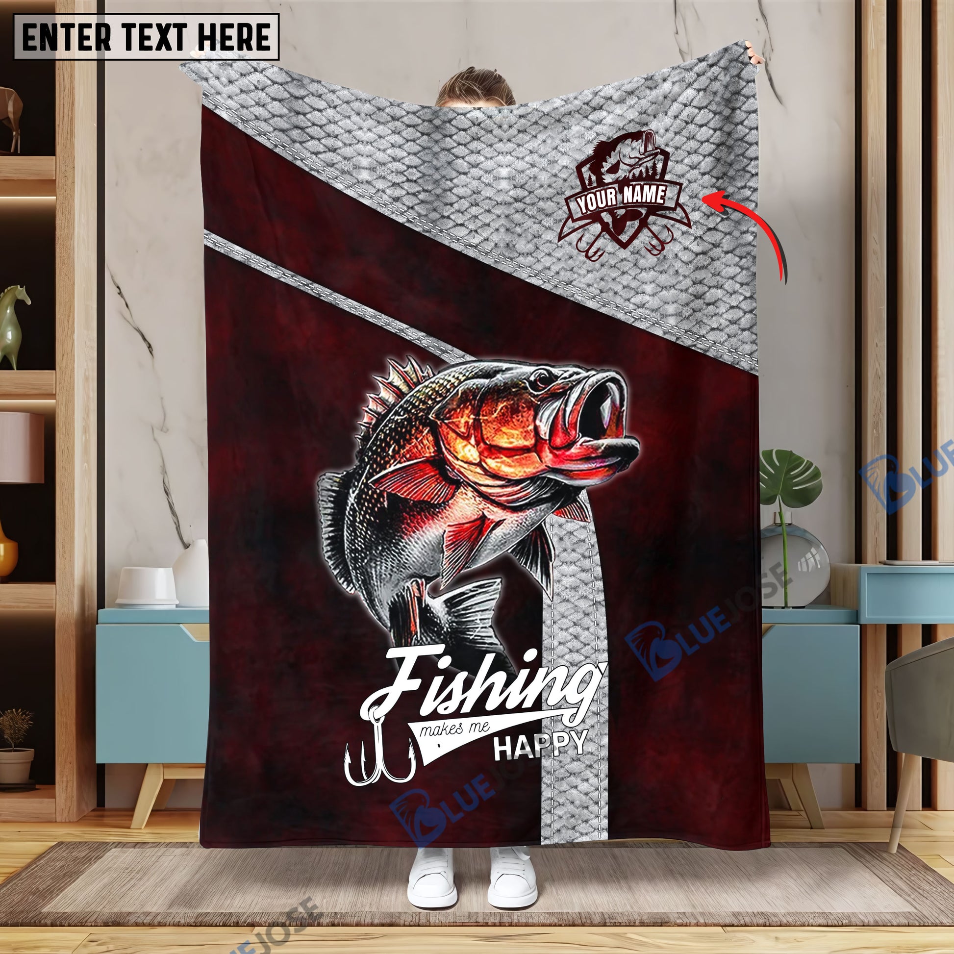 BlueJose Custom Name Bass Fishing Red Blanket