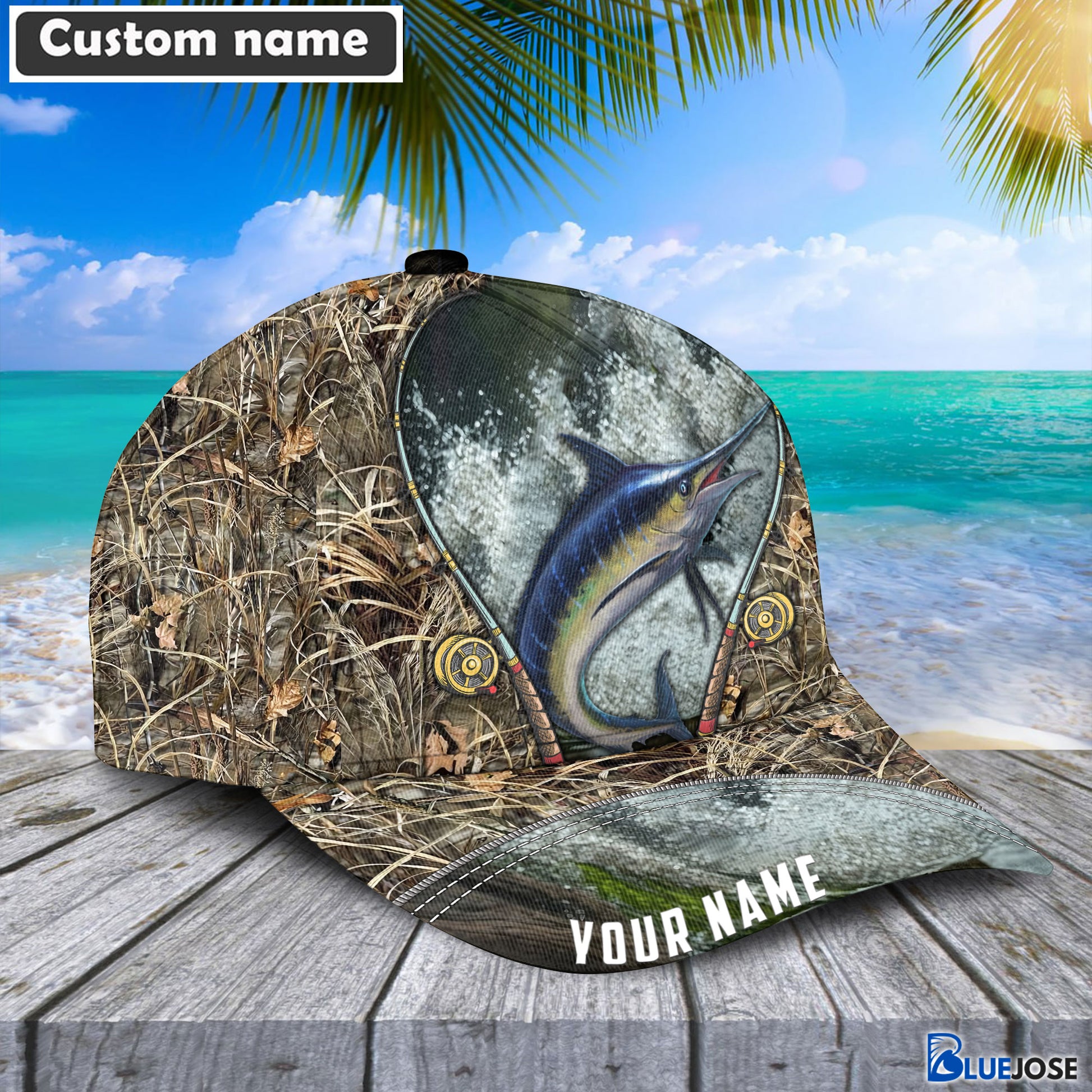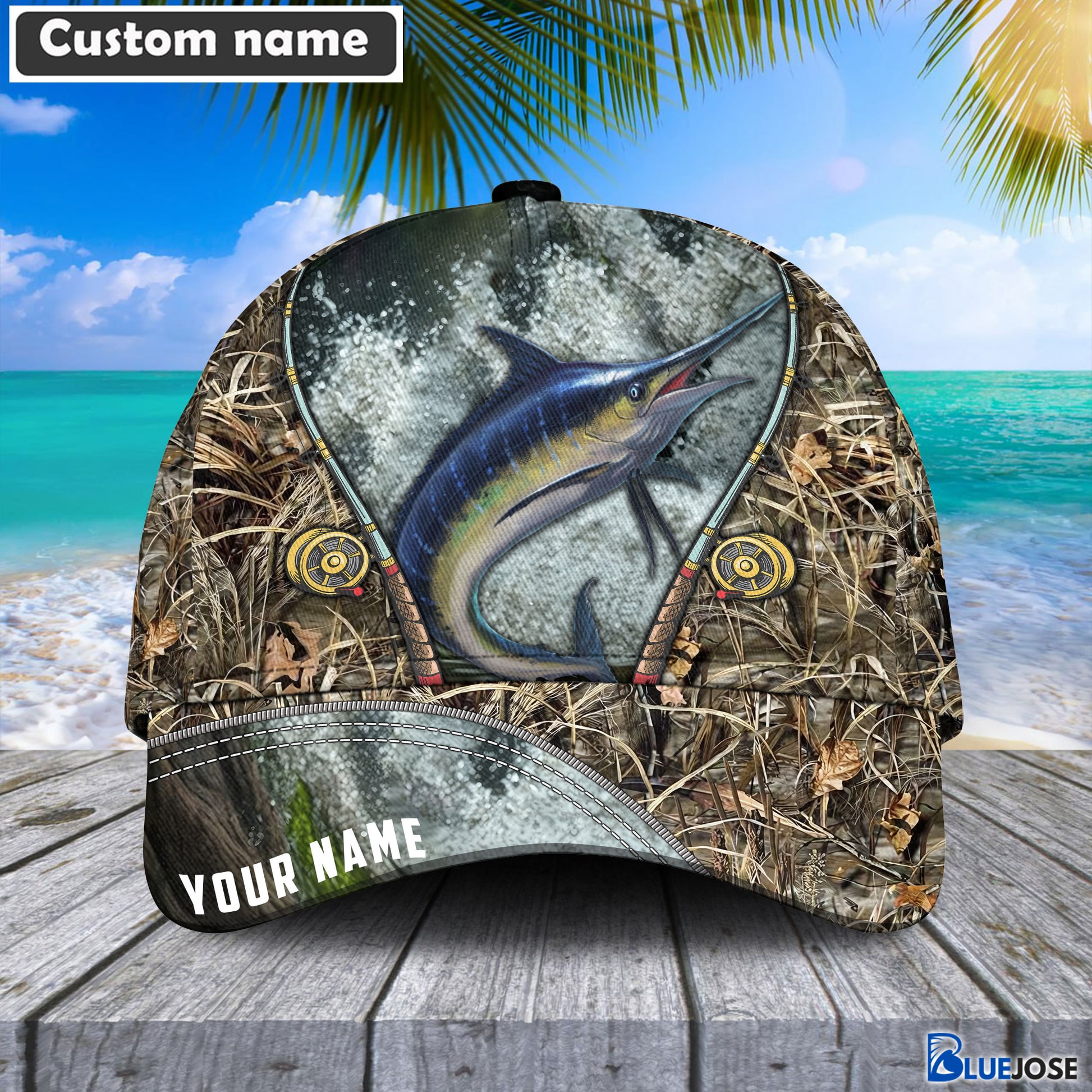 BlueJose Custom Name Blue Marlin Fishing Rod Cap