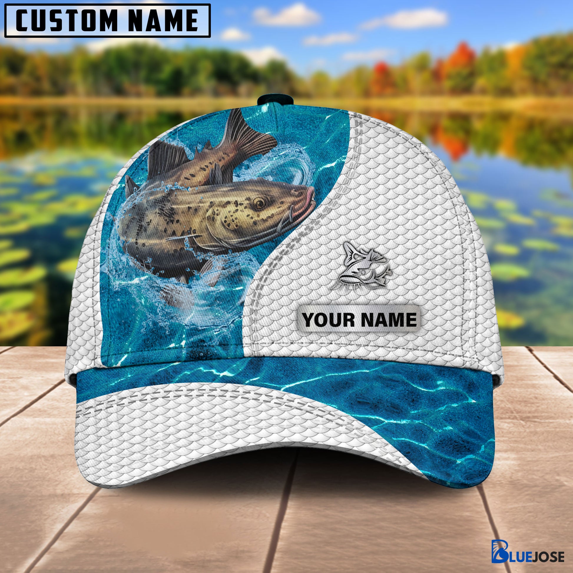BlueJose Custom Name Catfish Fishing Blue Water Cap