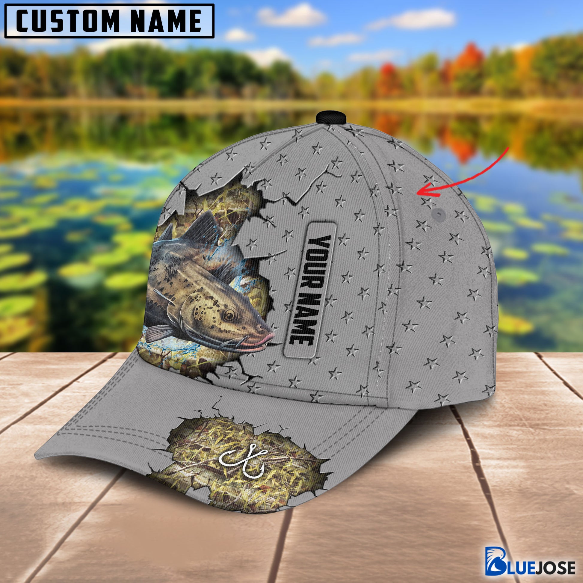 BlueJose Custom Name Catfish Fishing Grey 3D Cap