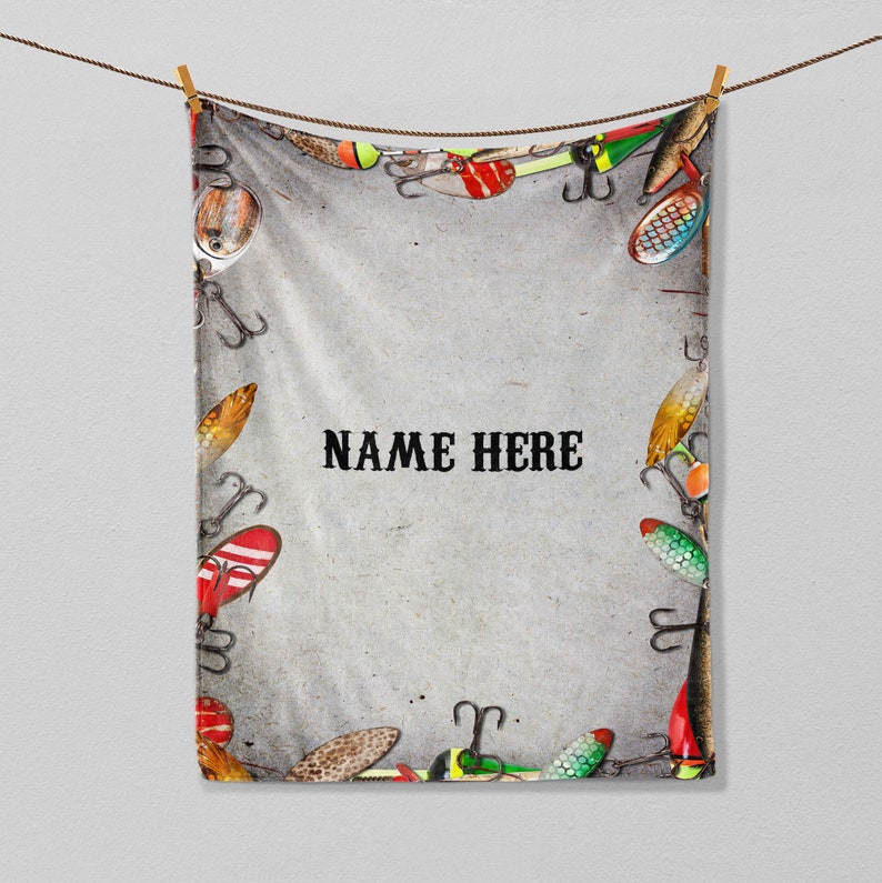 BlueJose Custom Name Fishing Bait Pattern Blanket