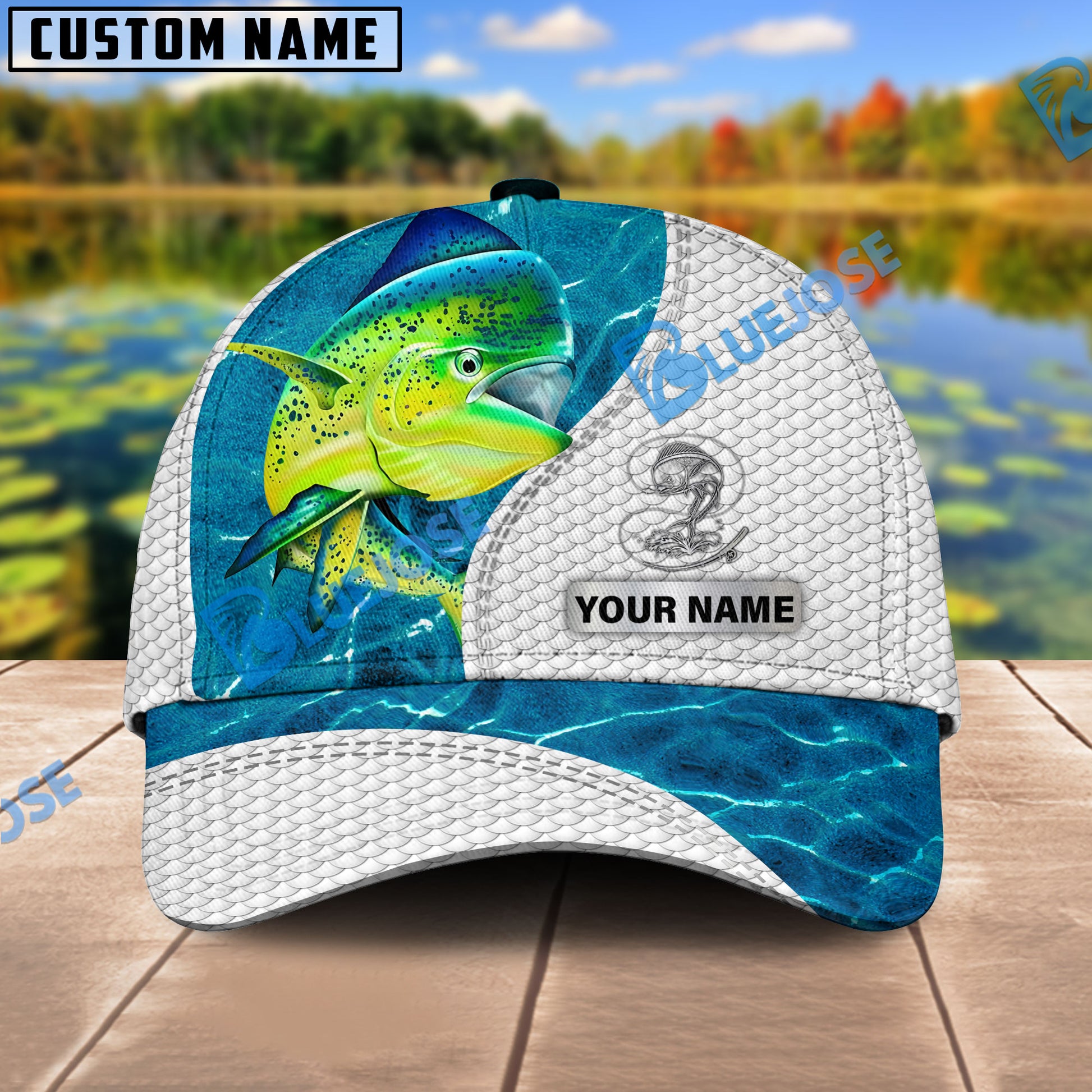 BlueJose Custom Name Mahi-mahi Fishing Blue Water Cap