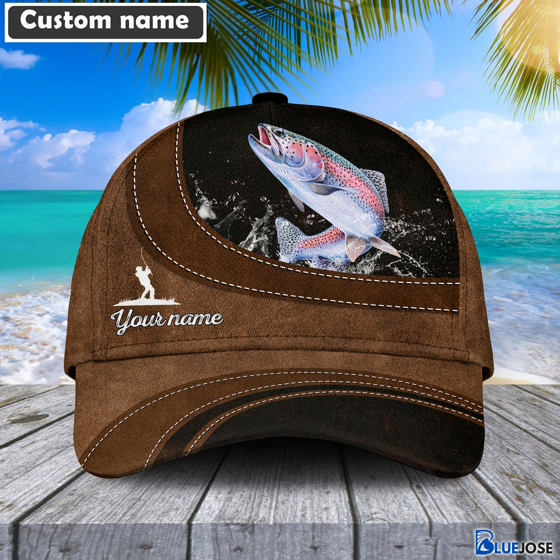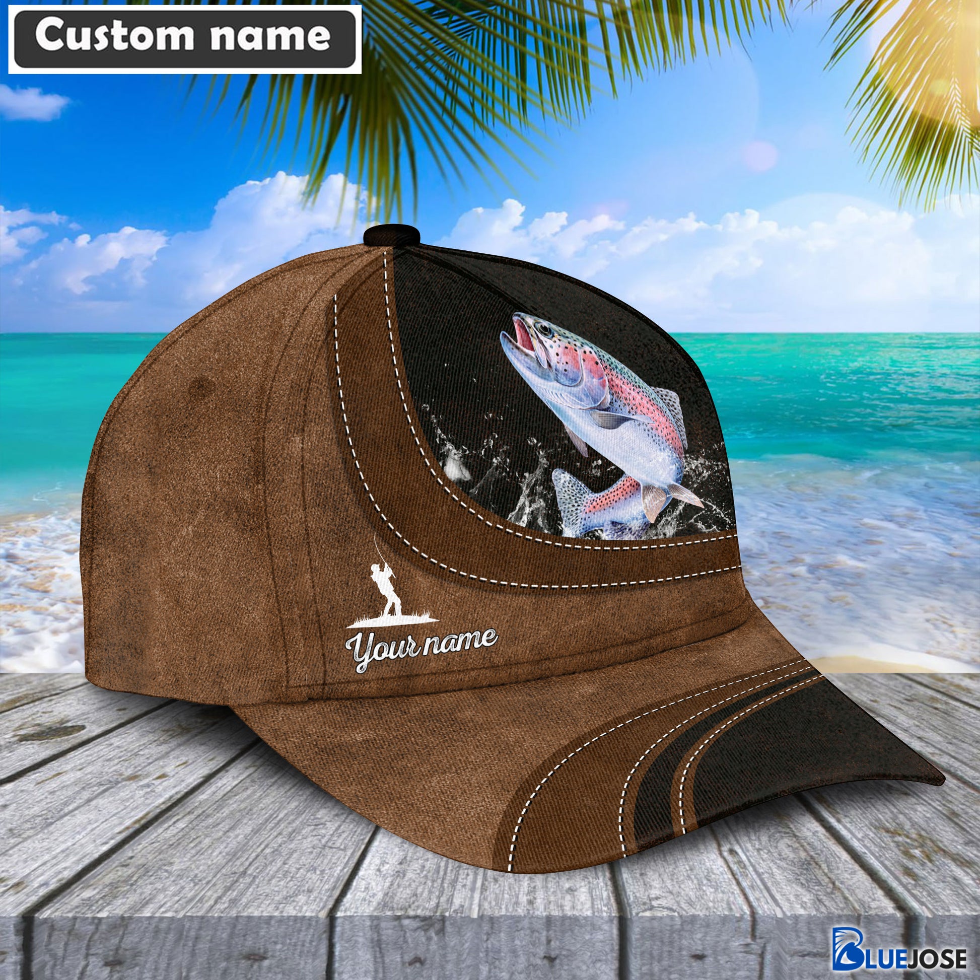 BlueJose Custom Name Trout Fishing Happiness Cap