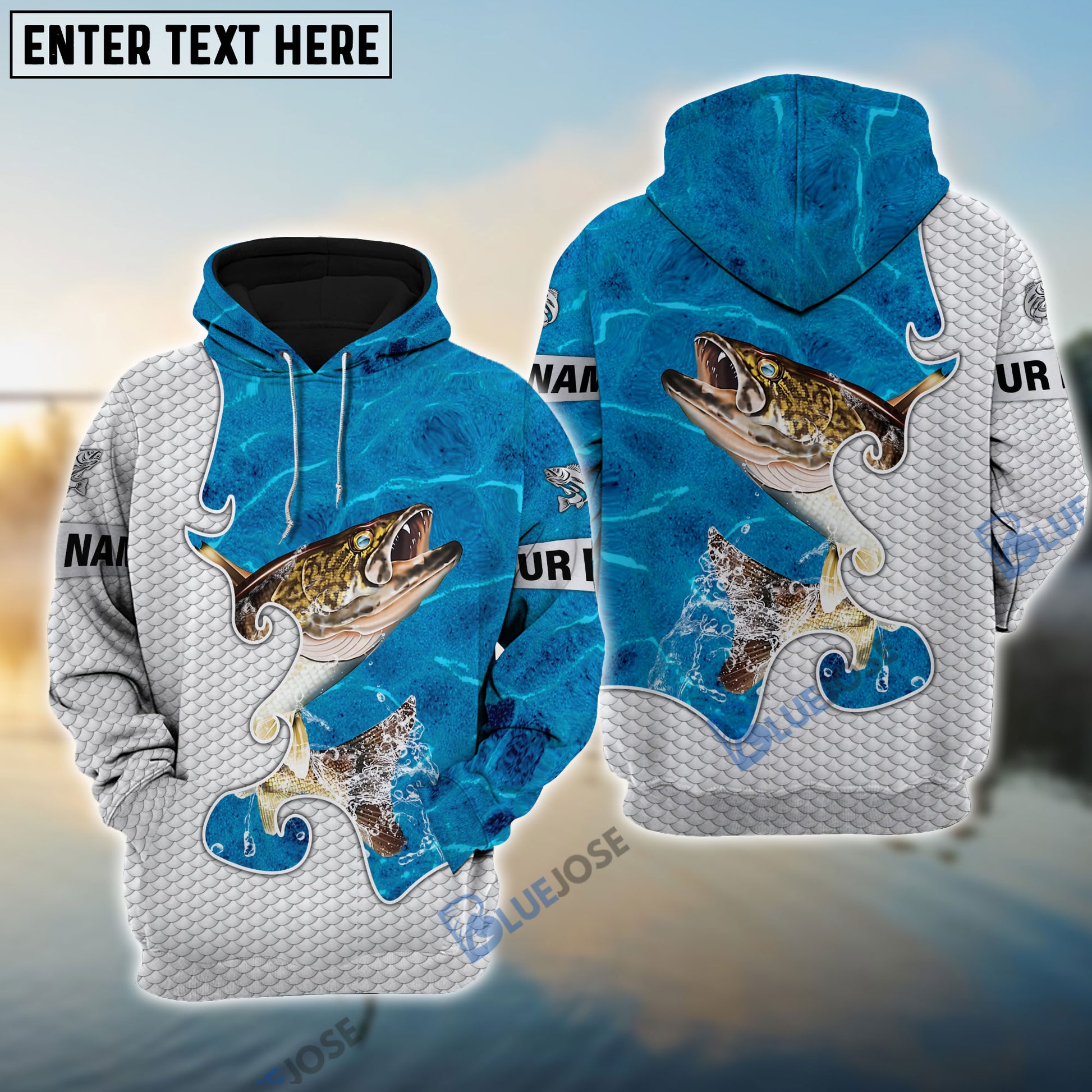 BlueJose Customize Name Walleye Fishing Blue Water 3D Hoodie