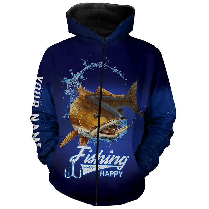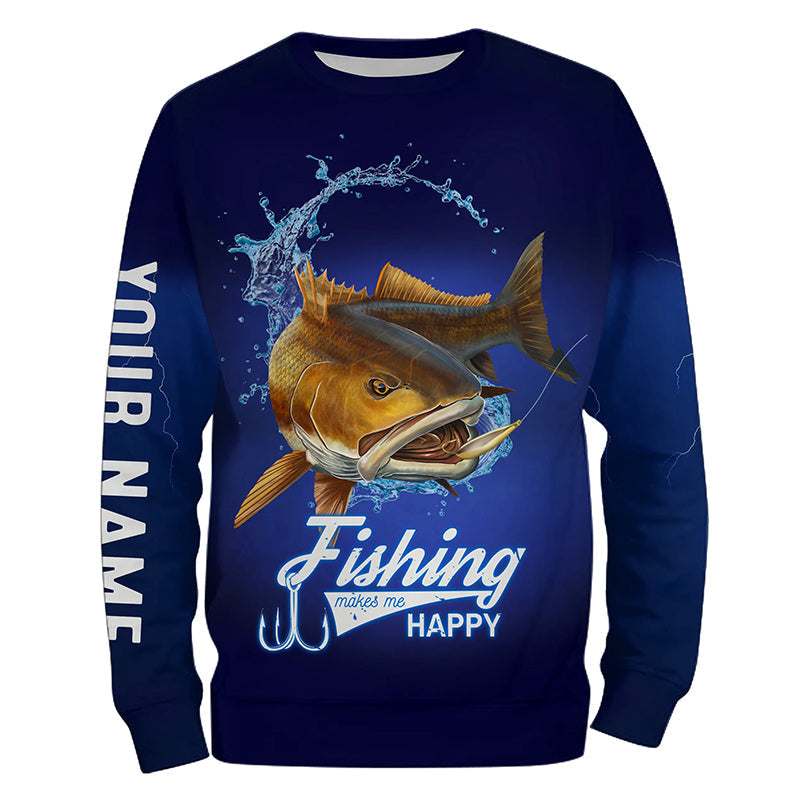 BlueJose Customized Name Fishing Makes Me Happy Redfish 3D Shirts