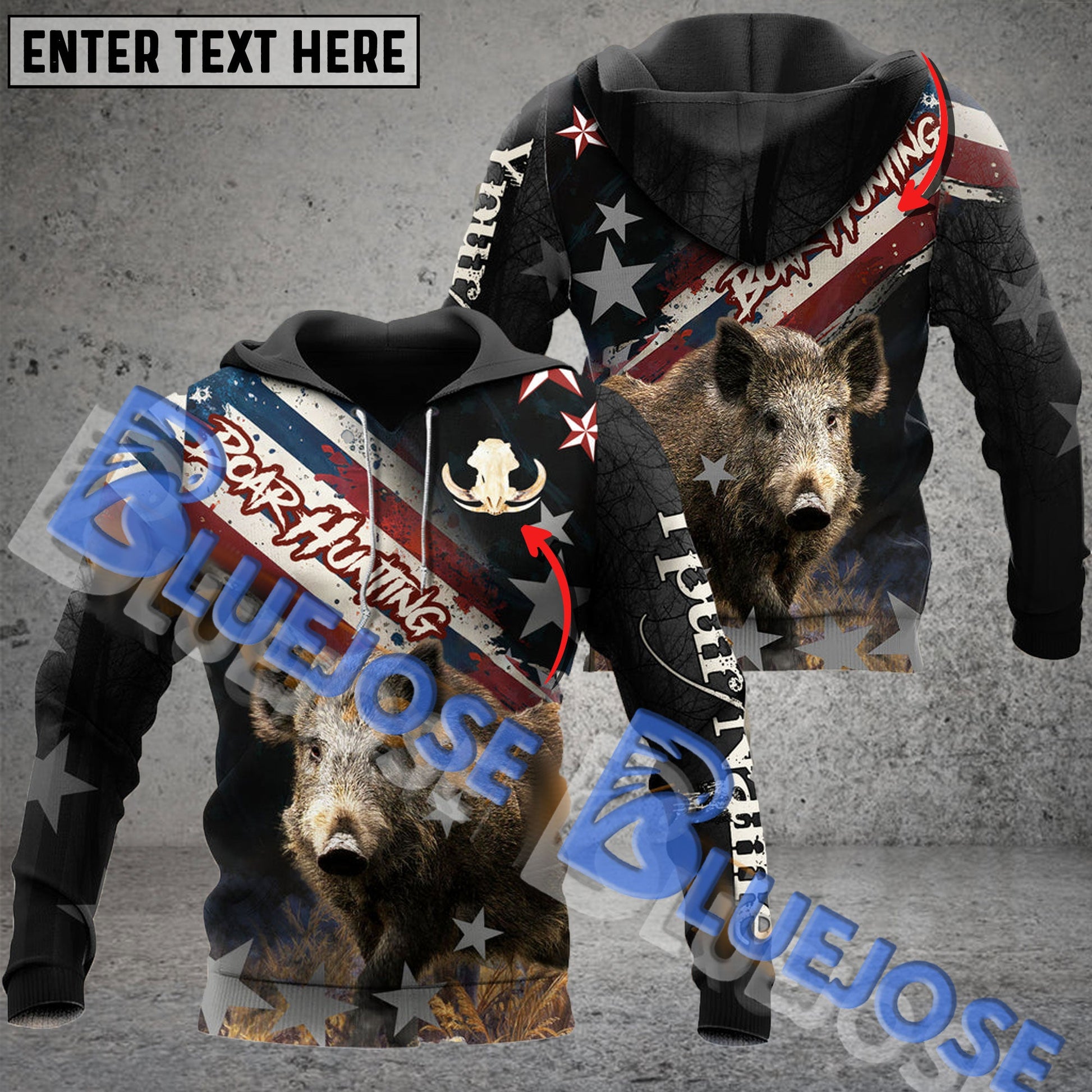 BlueJose Customized Name Boar Hunting Star USA Flag 3D Shirt