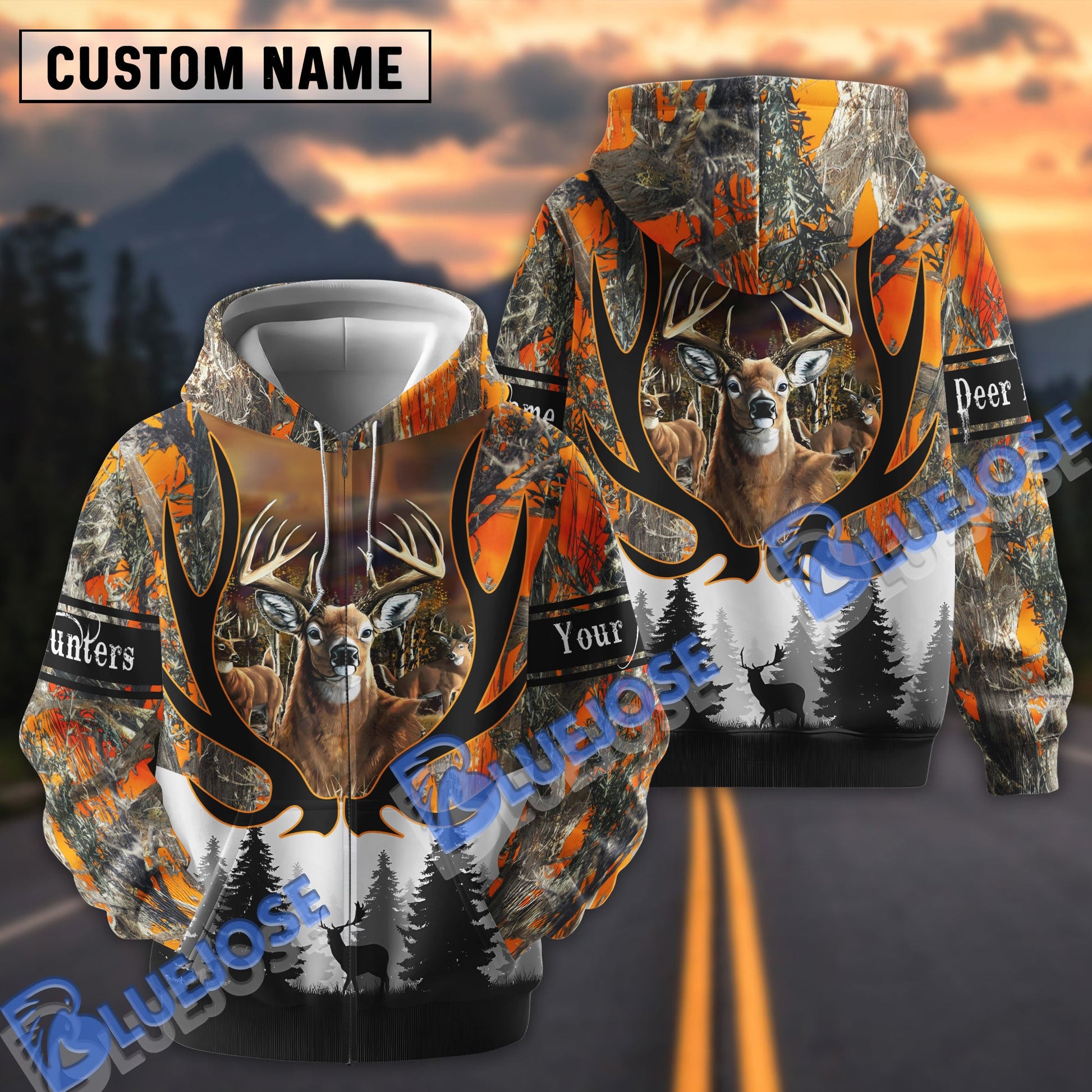 BlueJose Customized Name Deer Hunting Antler Pattern Orange 3D Shirt