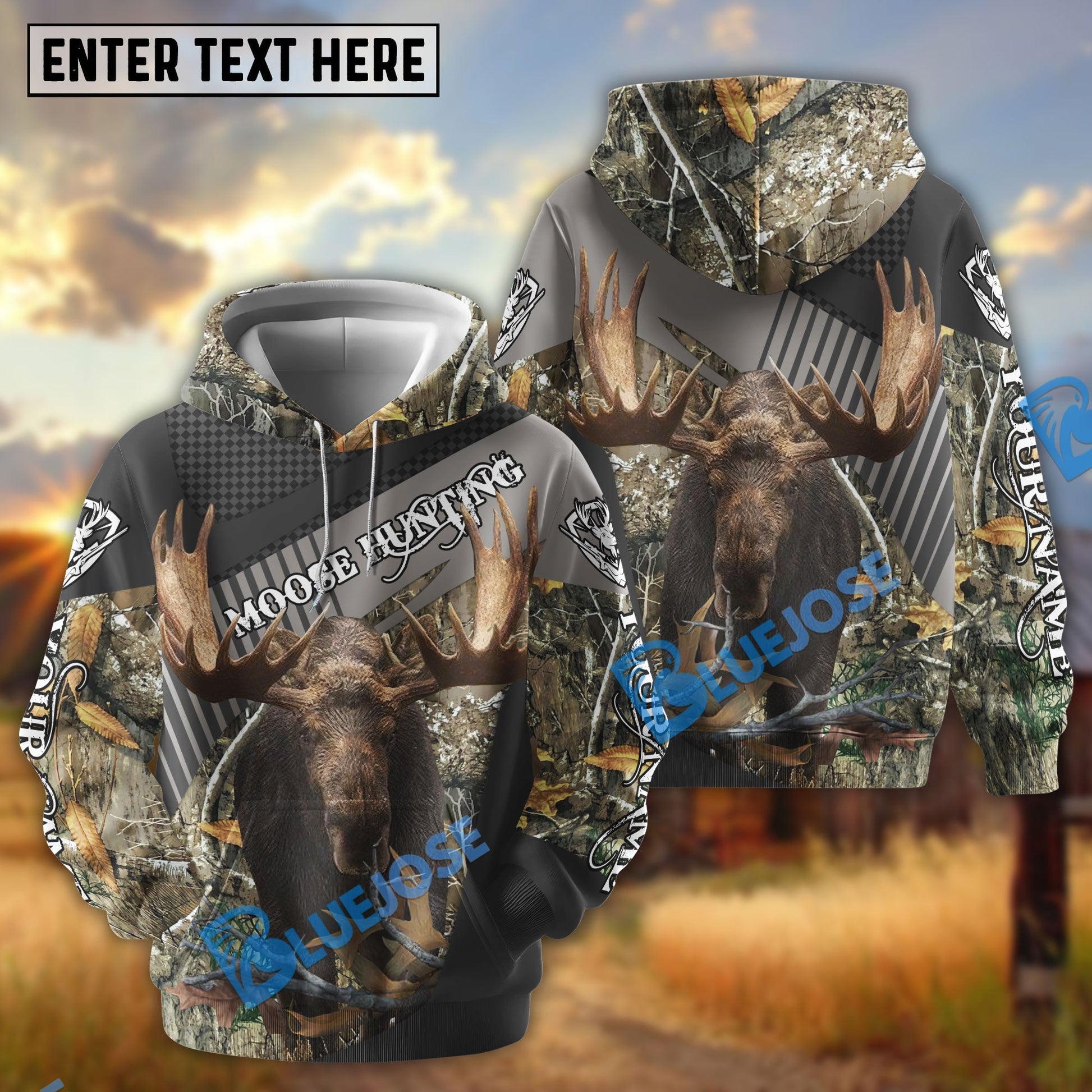 BlueJose Customized Name Moose Hunting Camo Grid Pattern 3D Shirt
