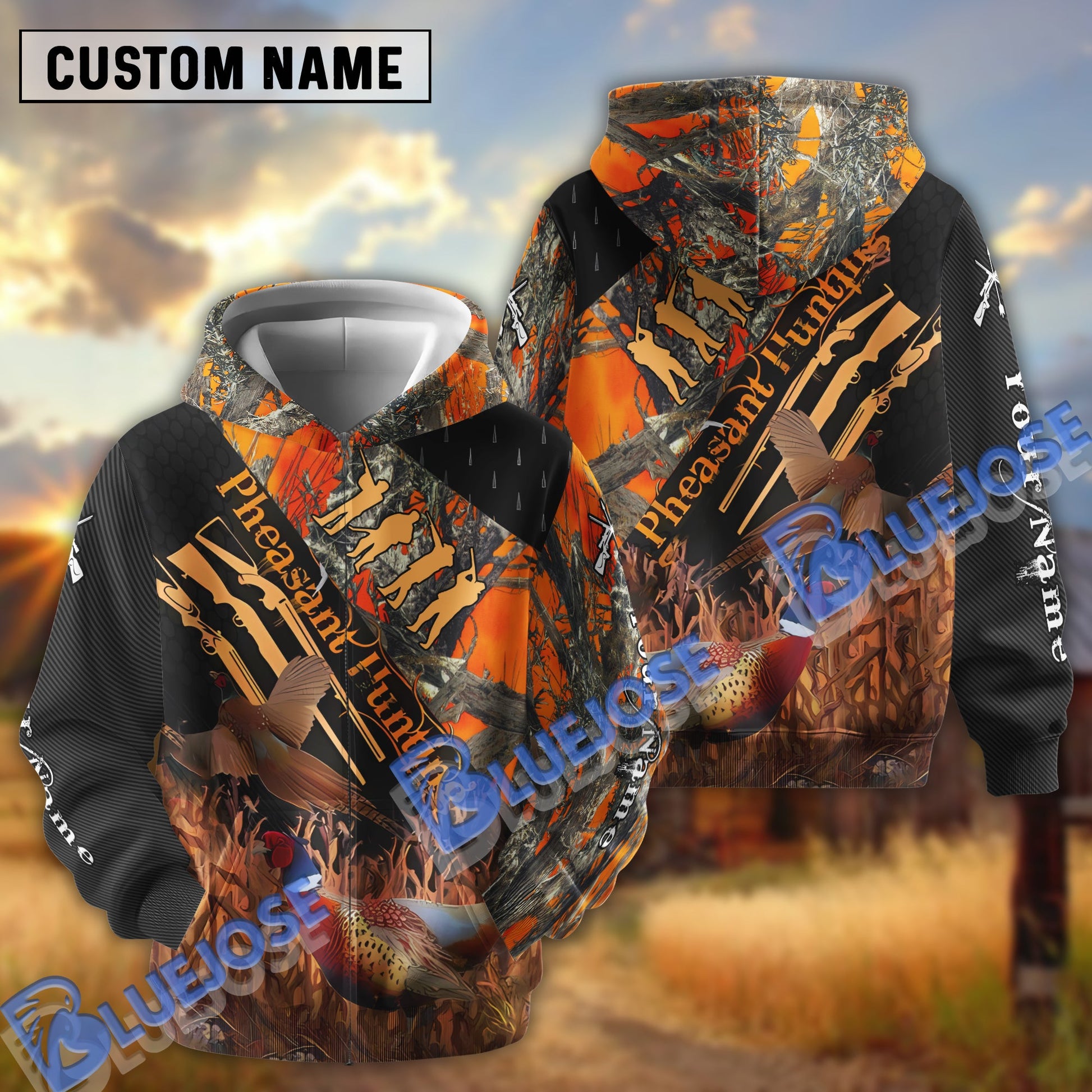 BlueJose Customized Name Pheasant Hunting Orange Camo 3D Shirt