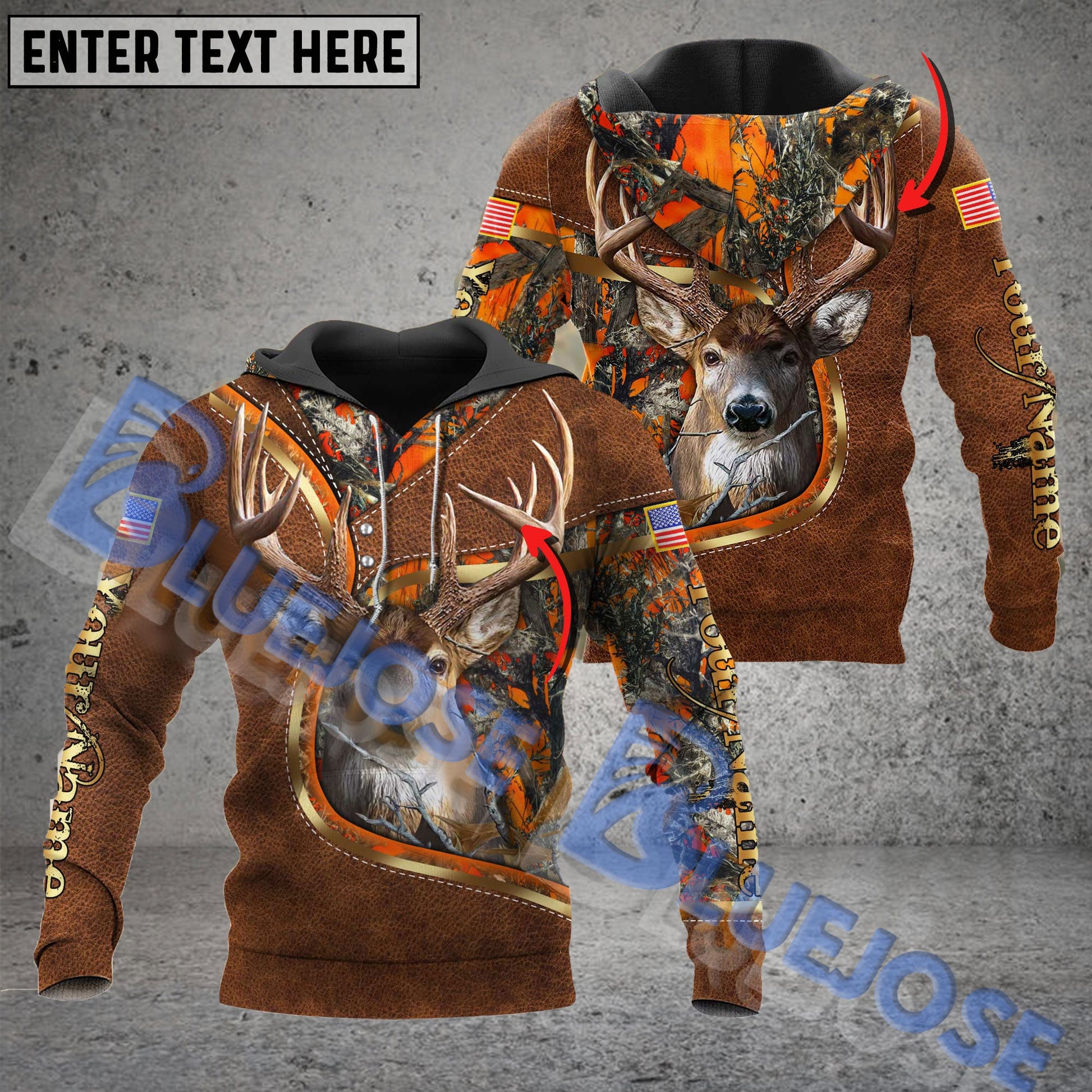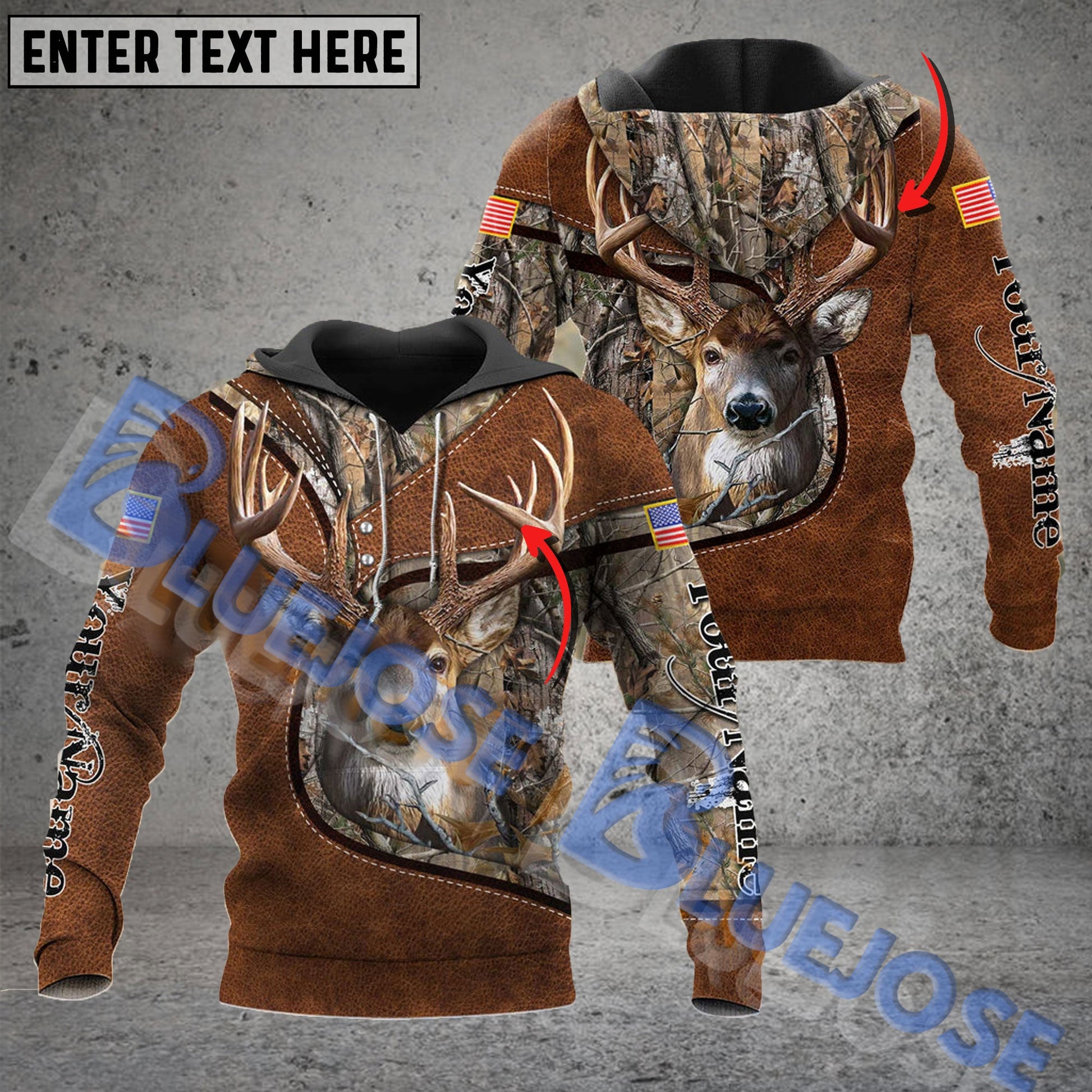 BlueJose Customized Name Wilderness Deer Hunting American Flag 3D Shirt (2 Colors)