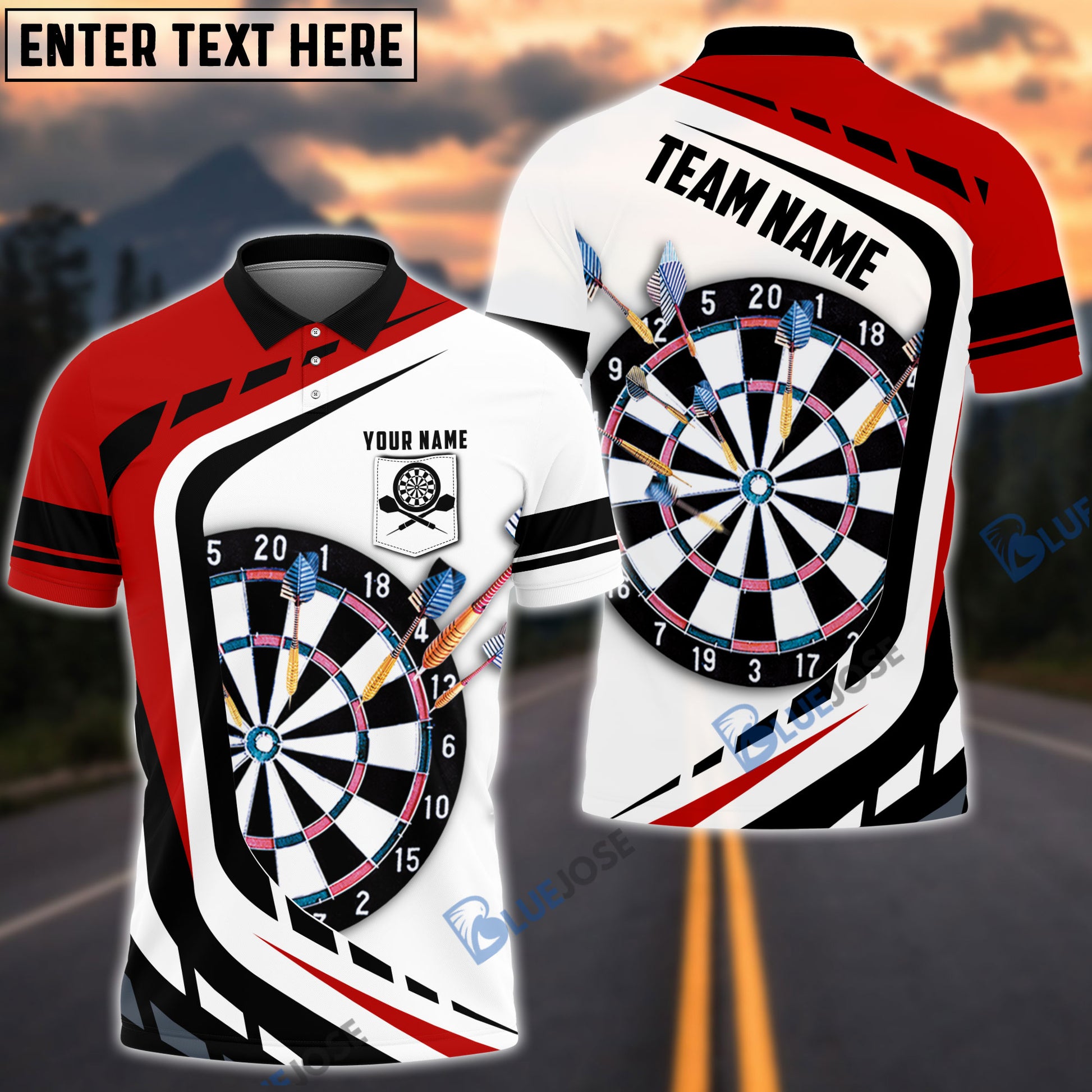 BlueJose Dart Board Personalized Name, Team Name 3D Pocket Polo