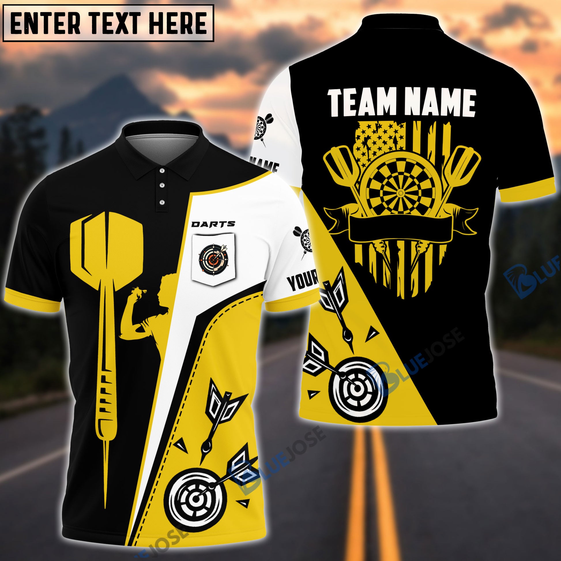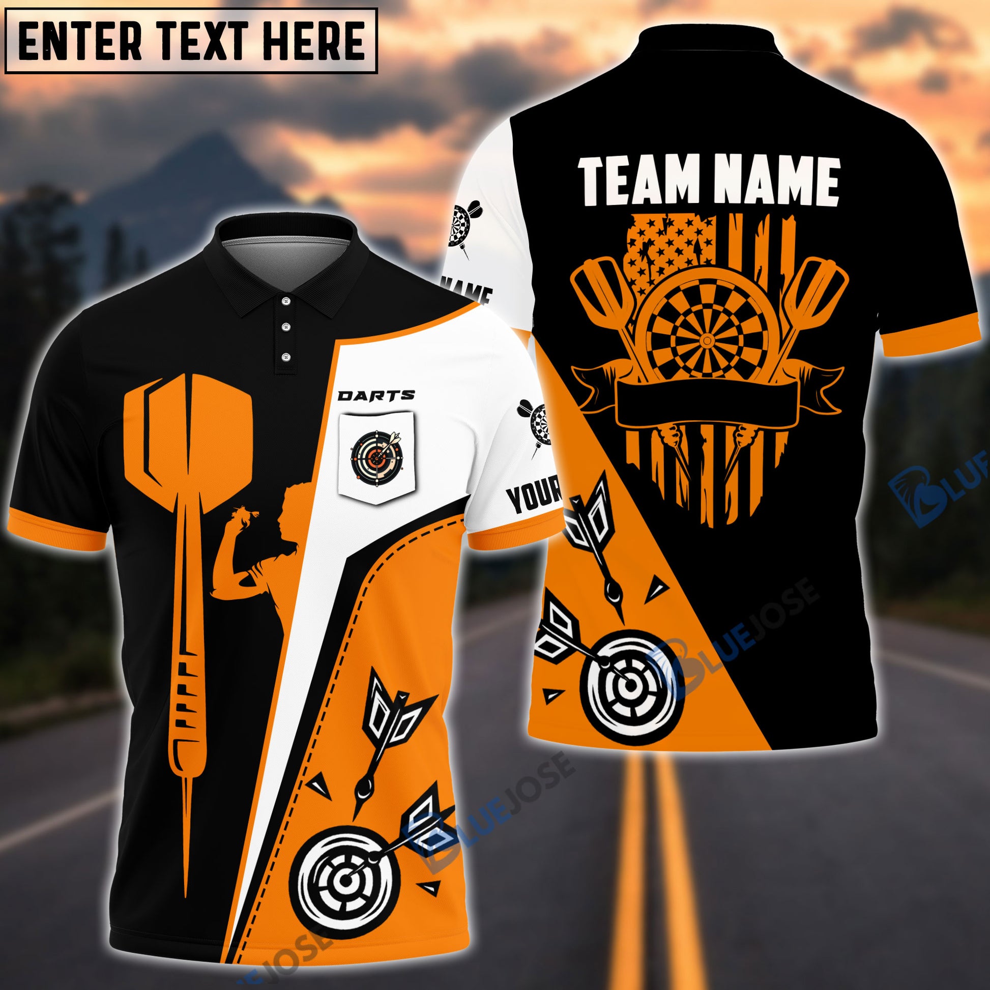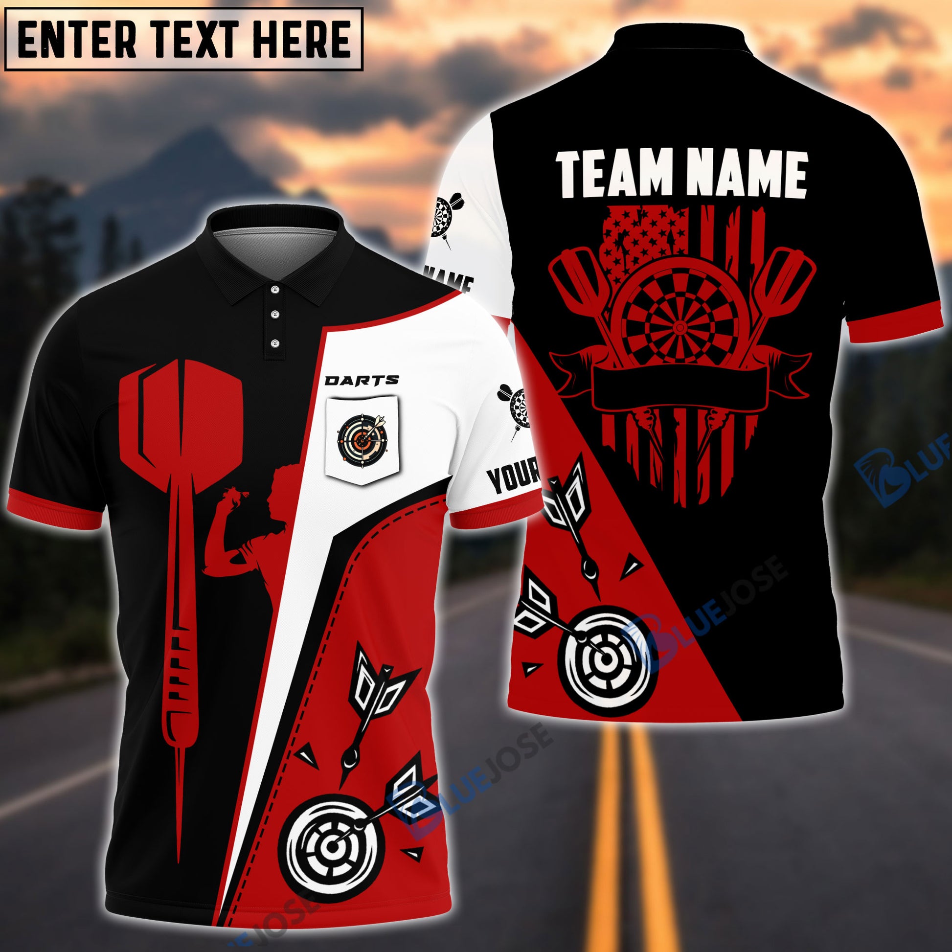 BlueJose Dart Board US Flag Personalized Name, Team Name 3D Pocket Polo