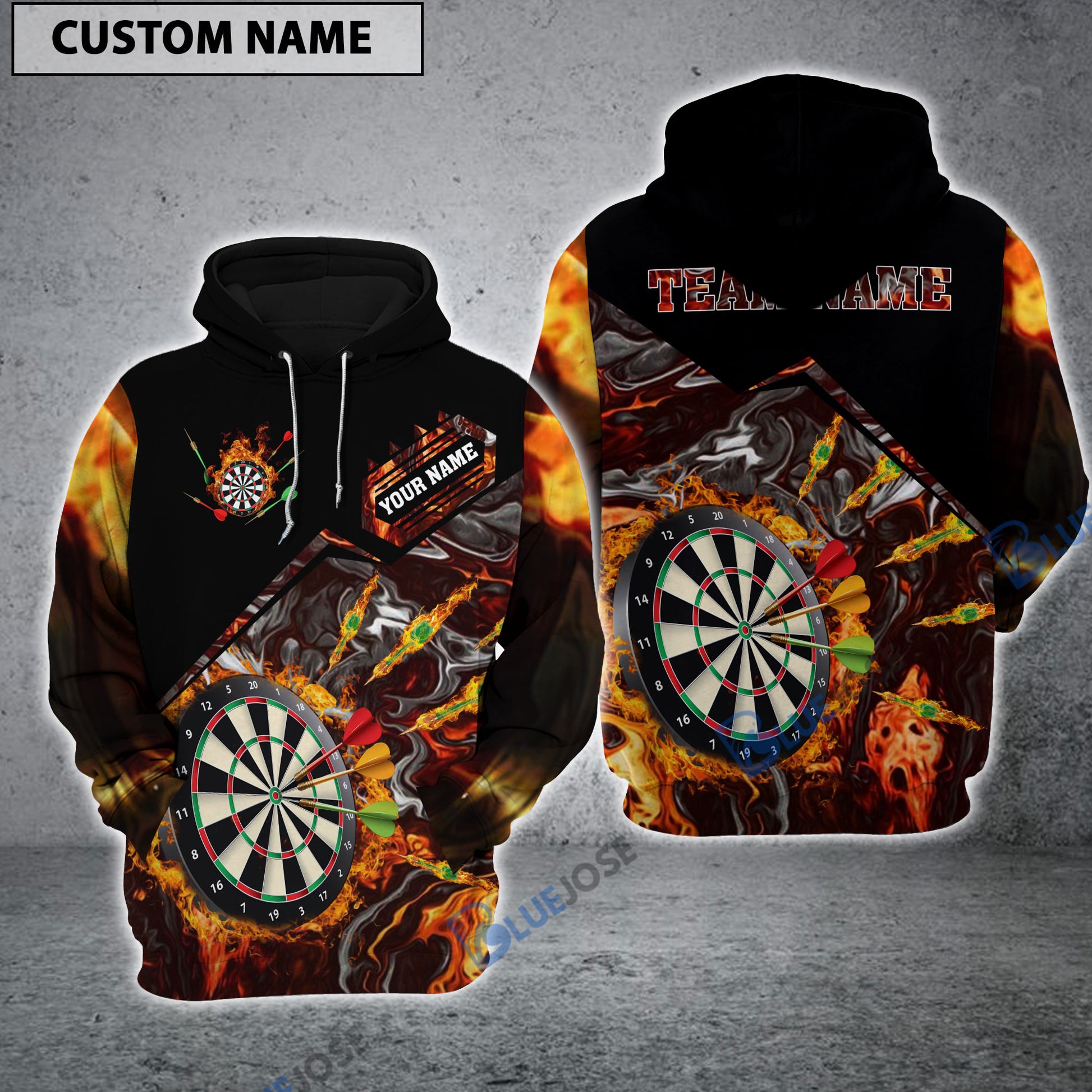 BlueJose Dart Fire Personalized Name, Team Name 3D Hoodie