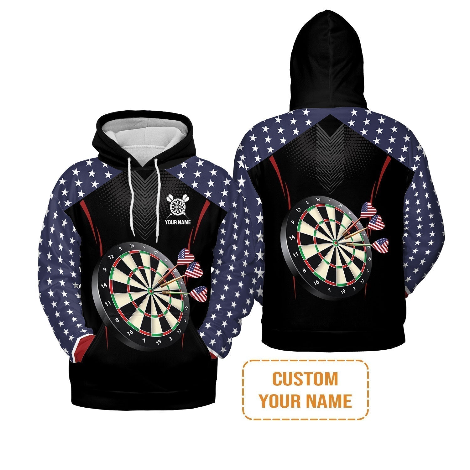 BlueJose Darts American Flag Black Background Custom Name Hoodie