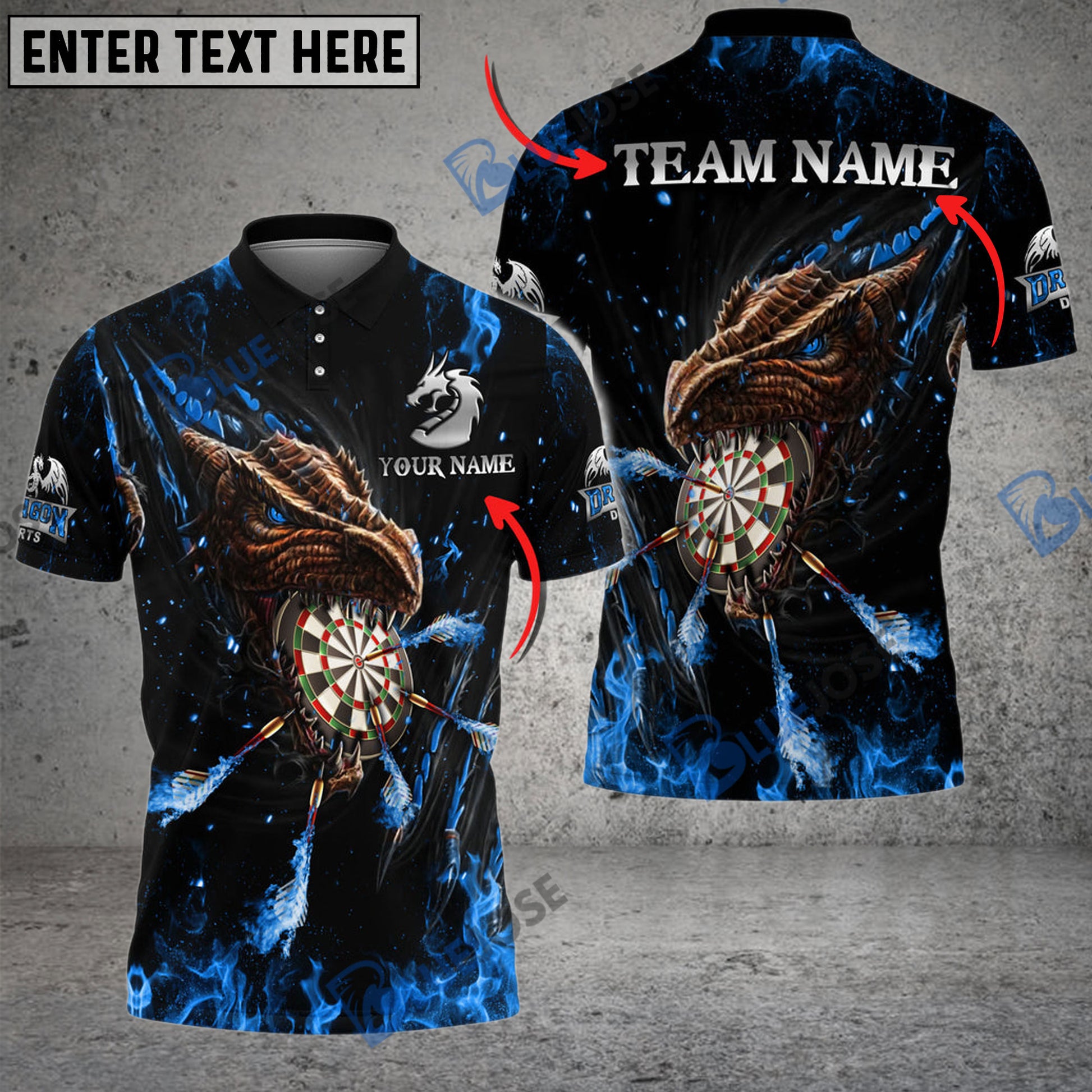 BlueJose Darts Flaming Dragon Personalized Name, Team Name 3D Shirt (4 Colors)
