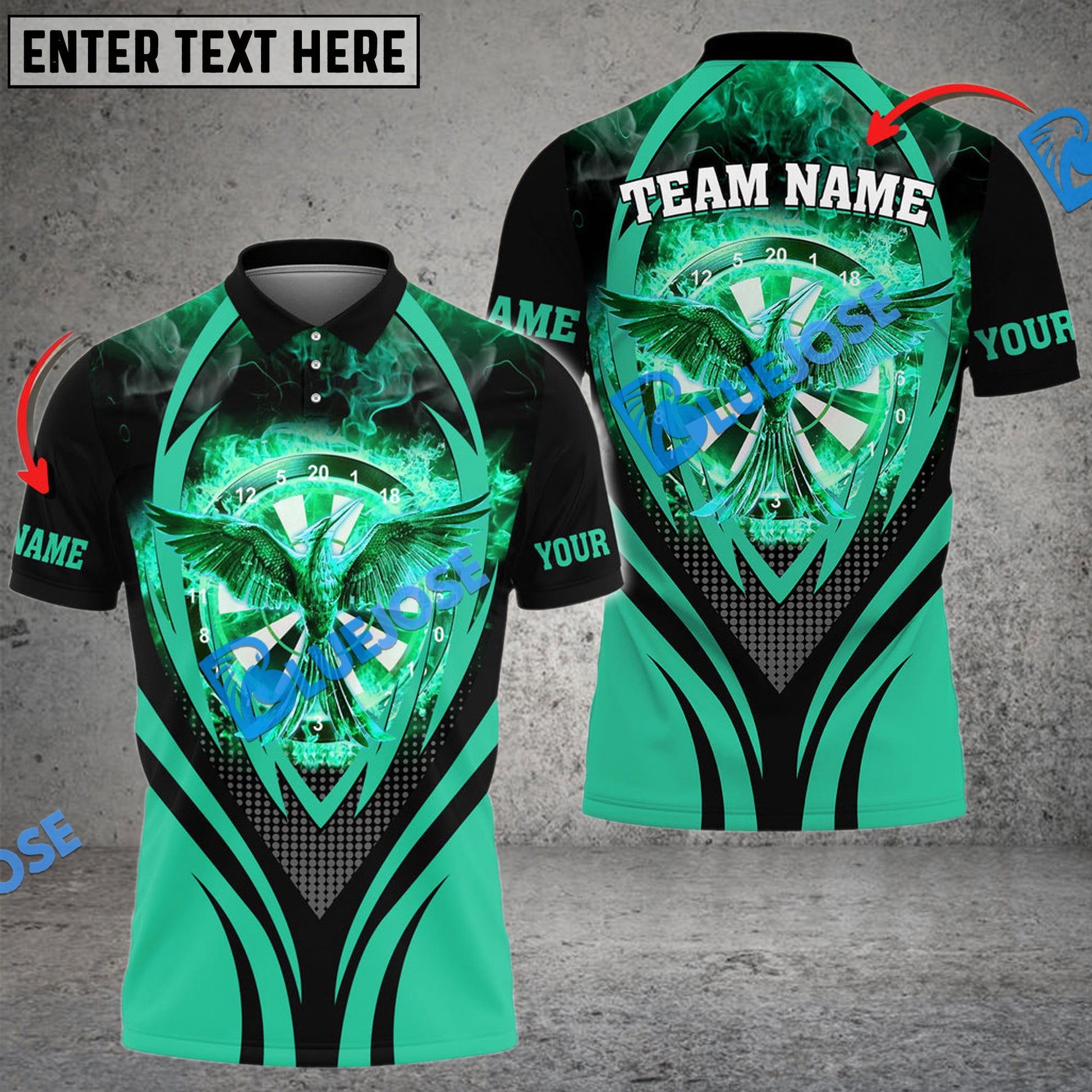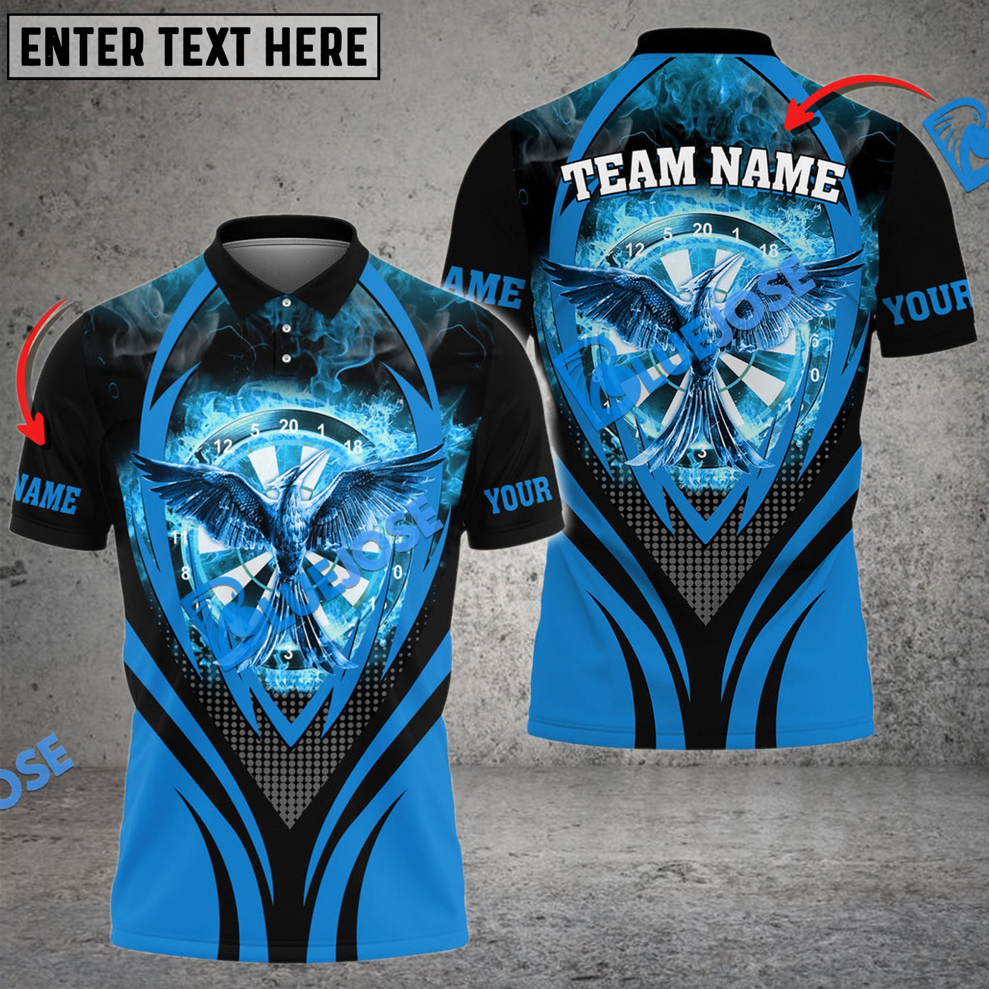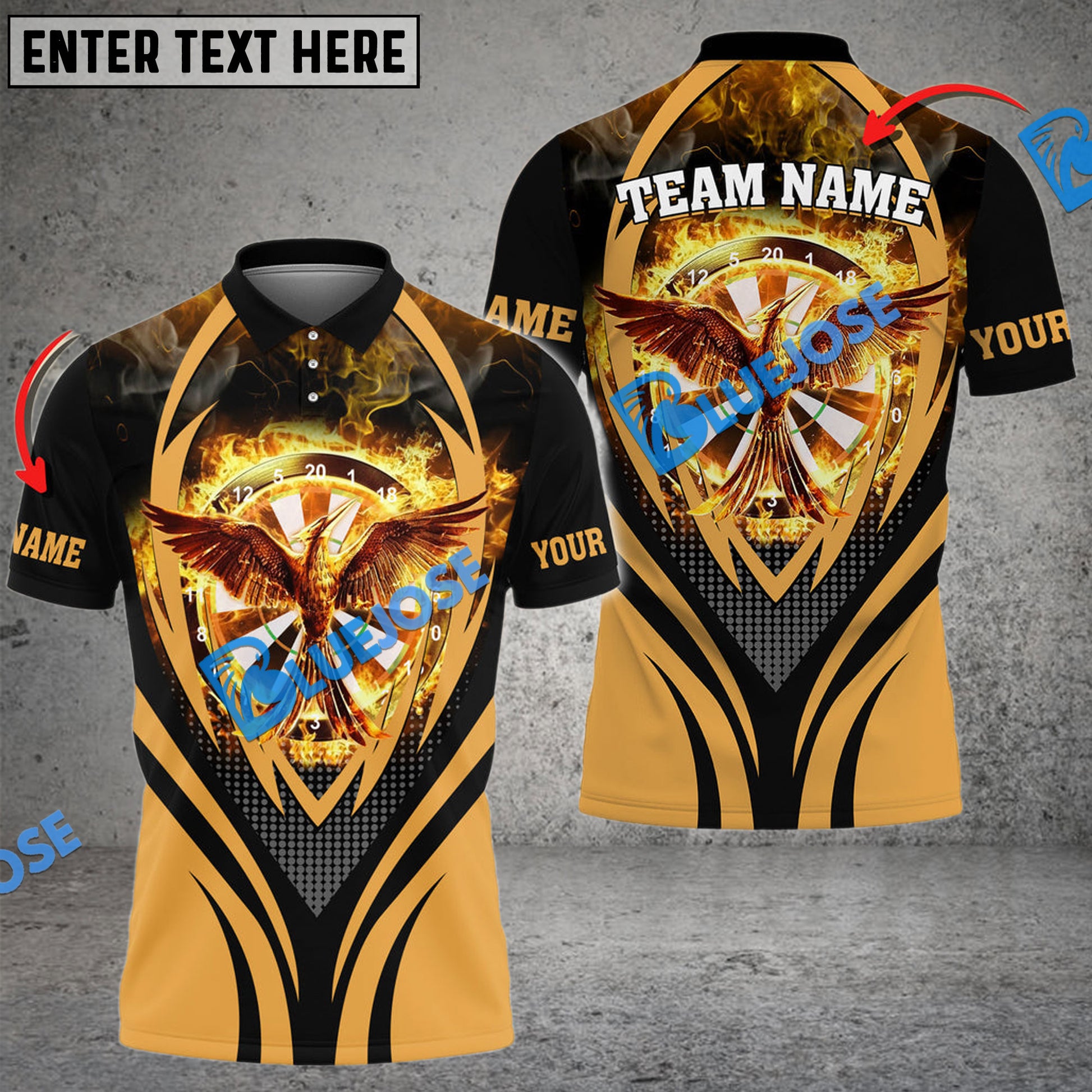BlueJose Darts Flaming Phoenix Personalized Name, Team Name 3D Shirt (4 Colors)