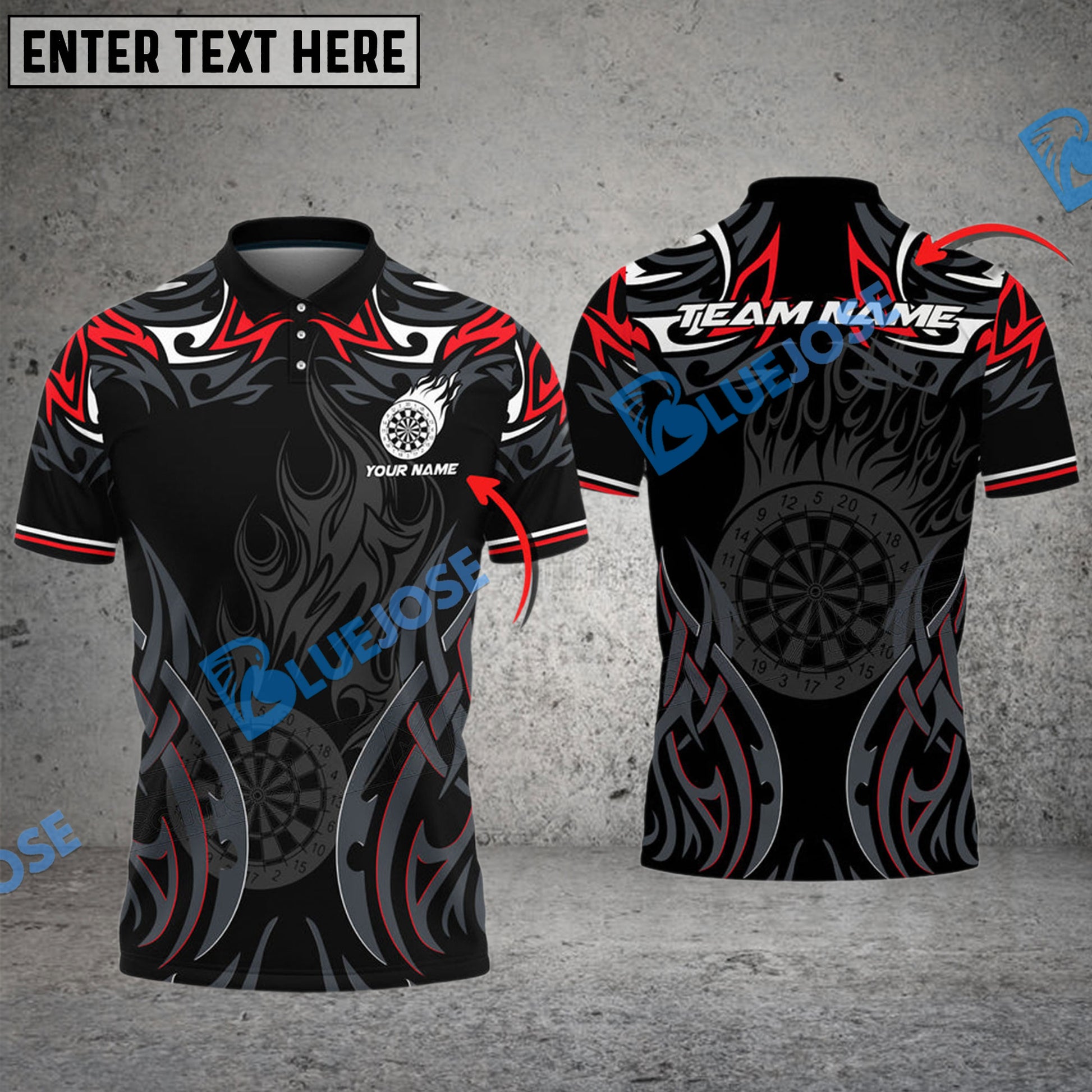 BlueJose Darts Gray Flame Personalized Name, Team Name 3D Shirt (4 Colors)