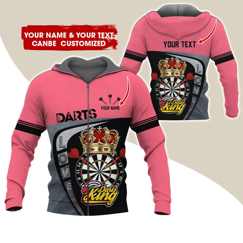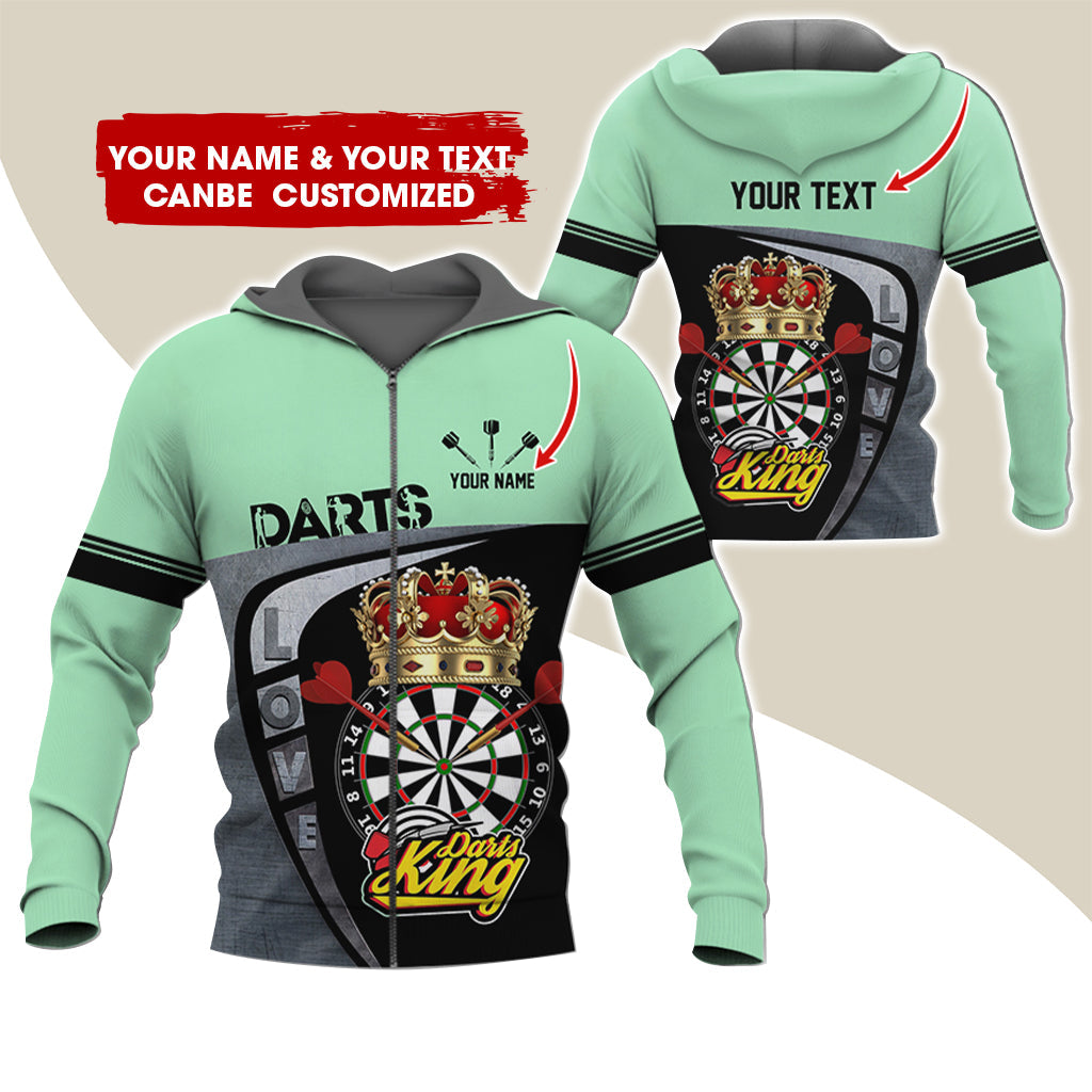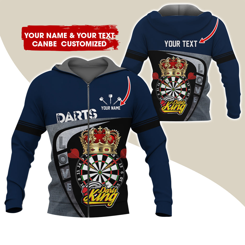 BlueJose Darts King Personalized Name, Team Name 3D Zipper Hoodie Hoodie