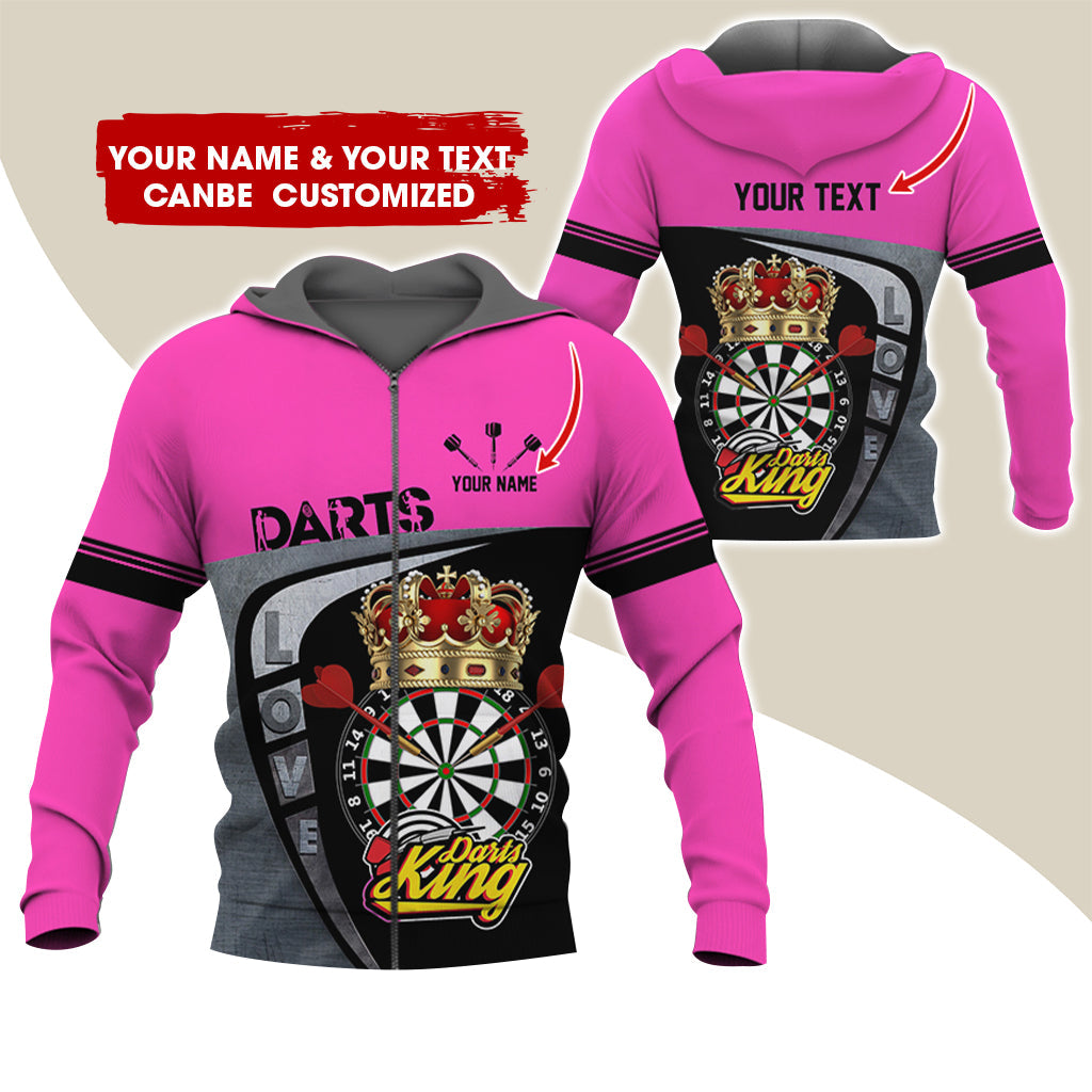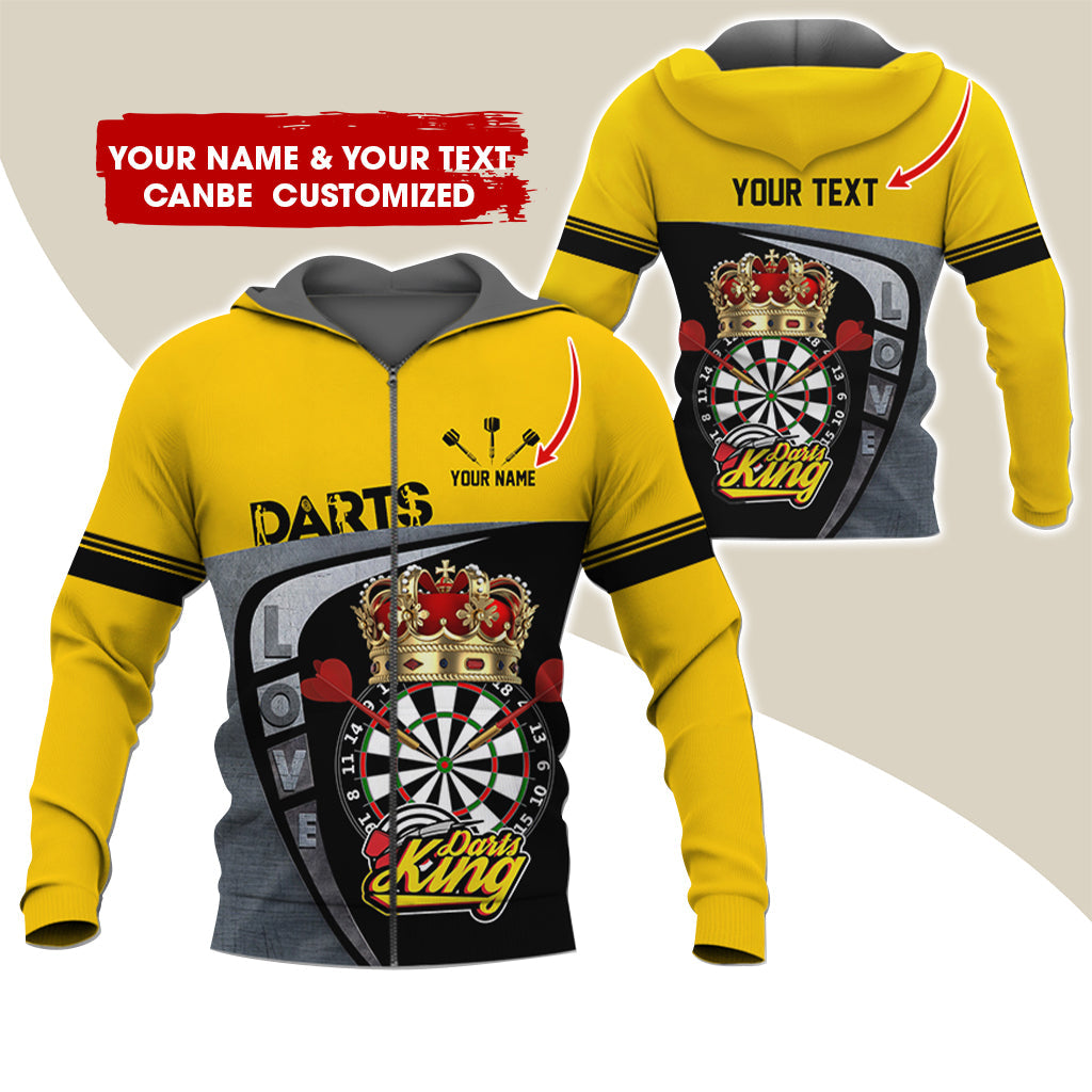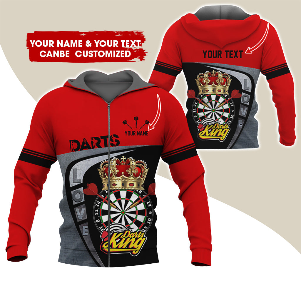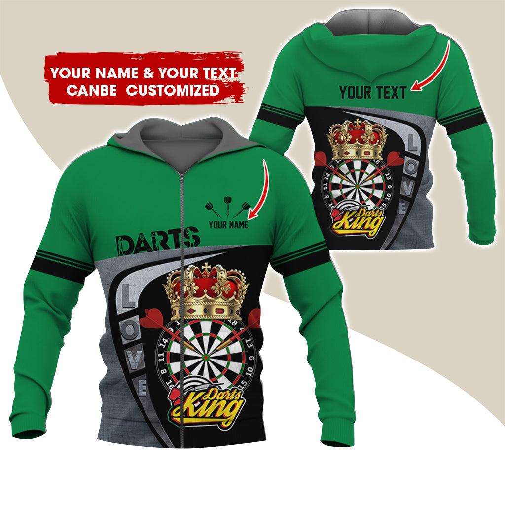 BlueJose Darts King Personalized Name, Team Name 3D Zipper Hoodie Hoodie