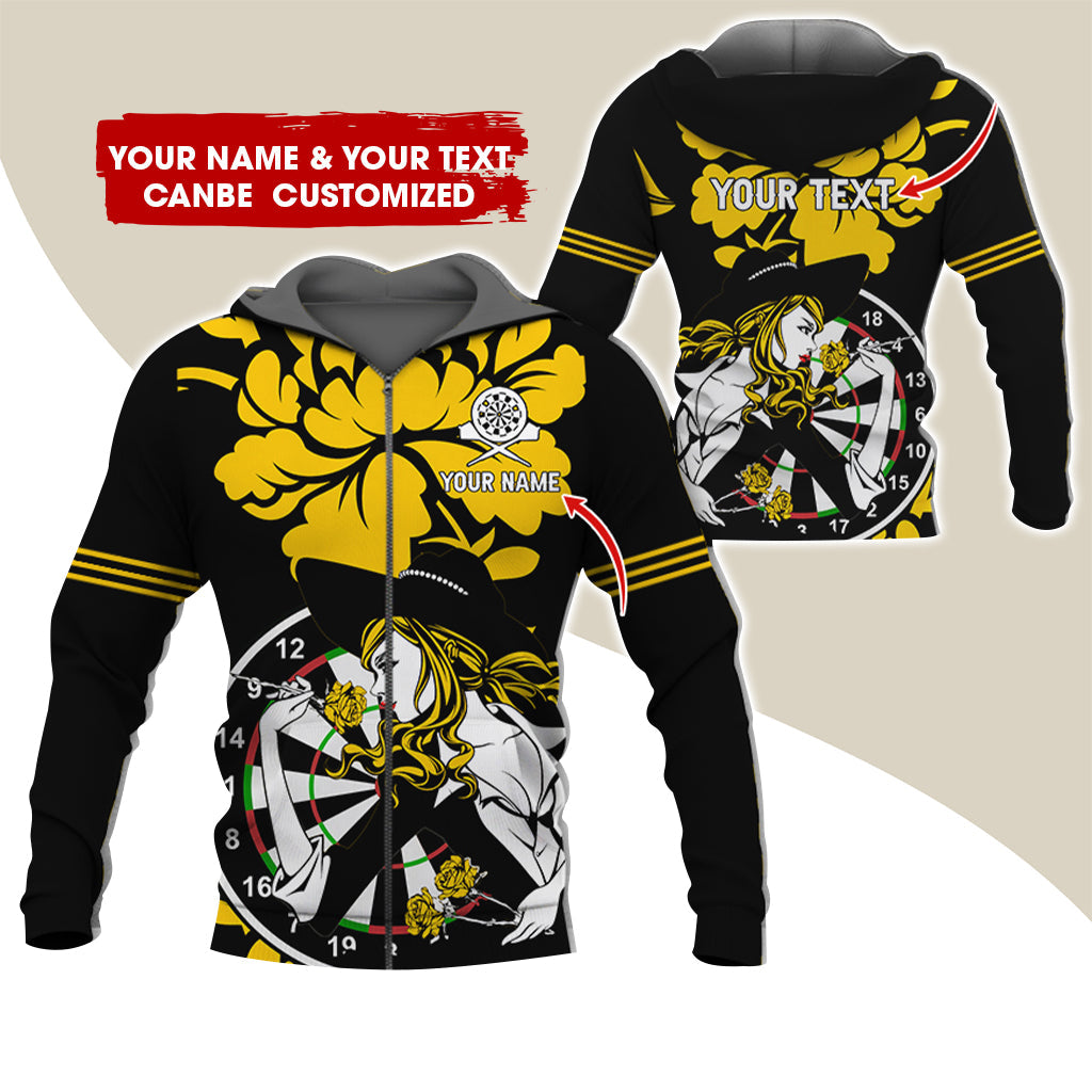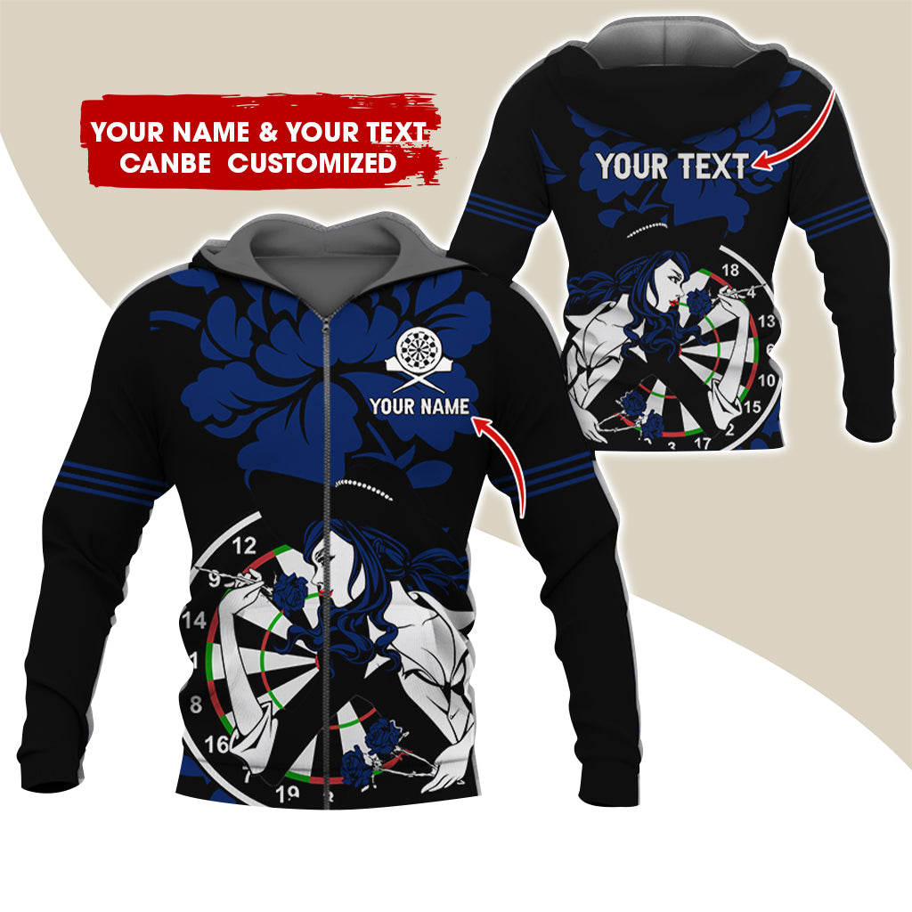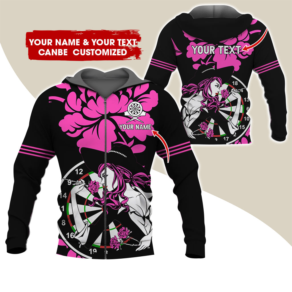 BlueJose Darts Rose Girl Personalized Name, Team Name 3D Zipper Hoodie Hoodie