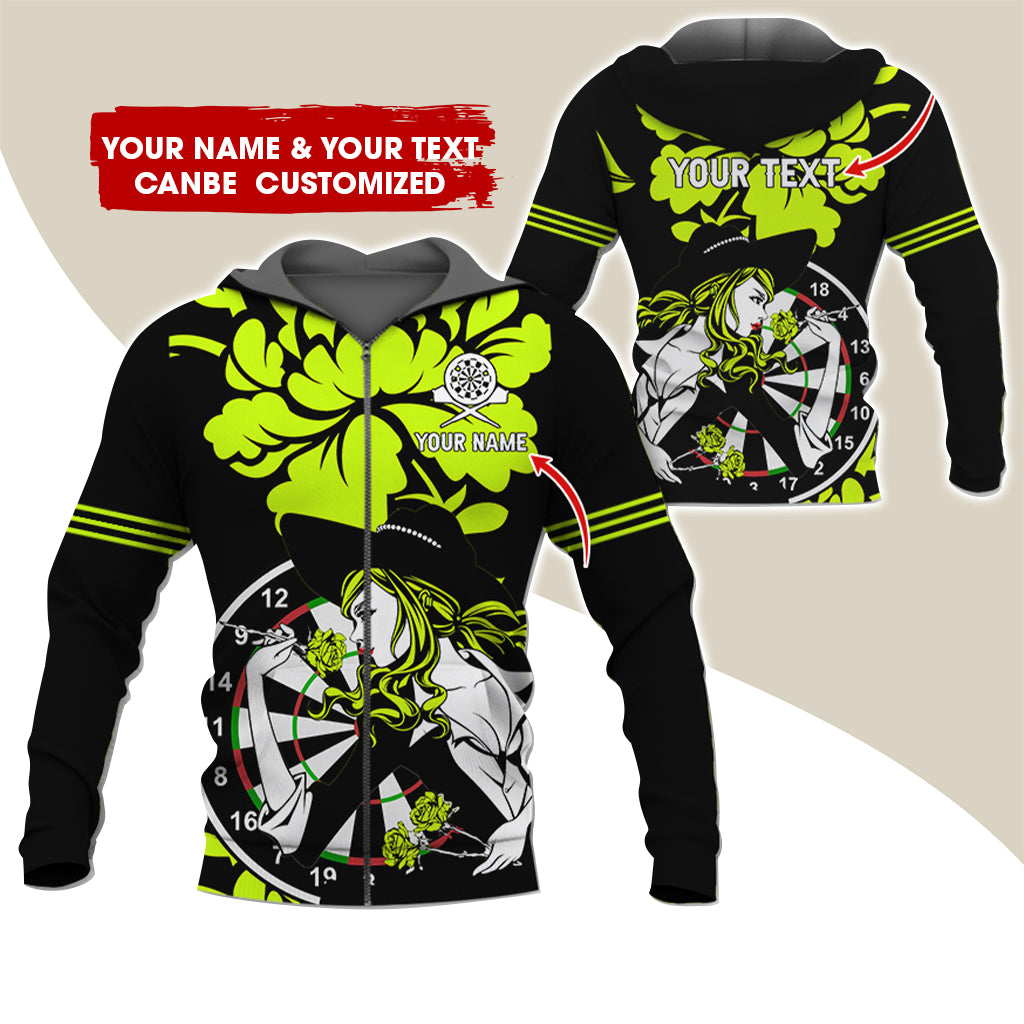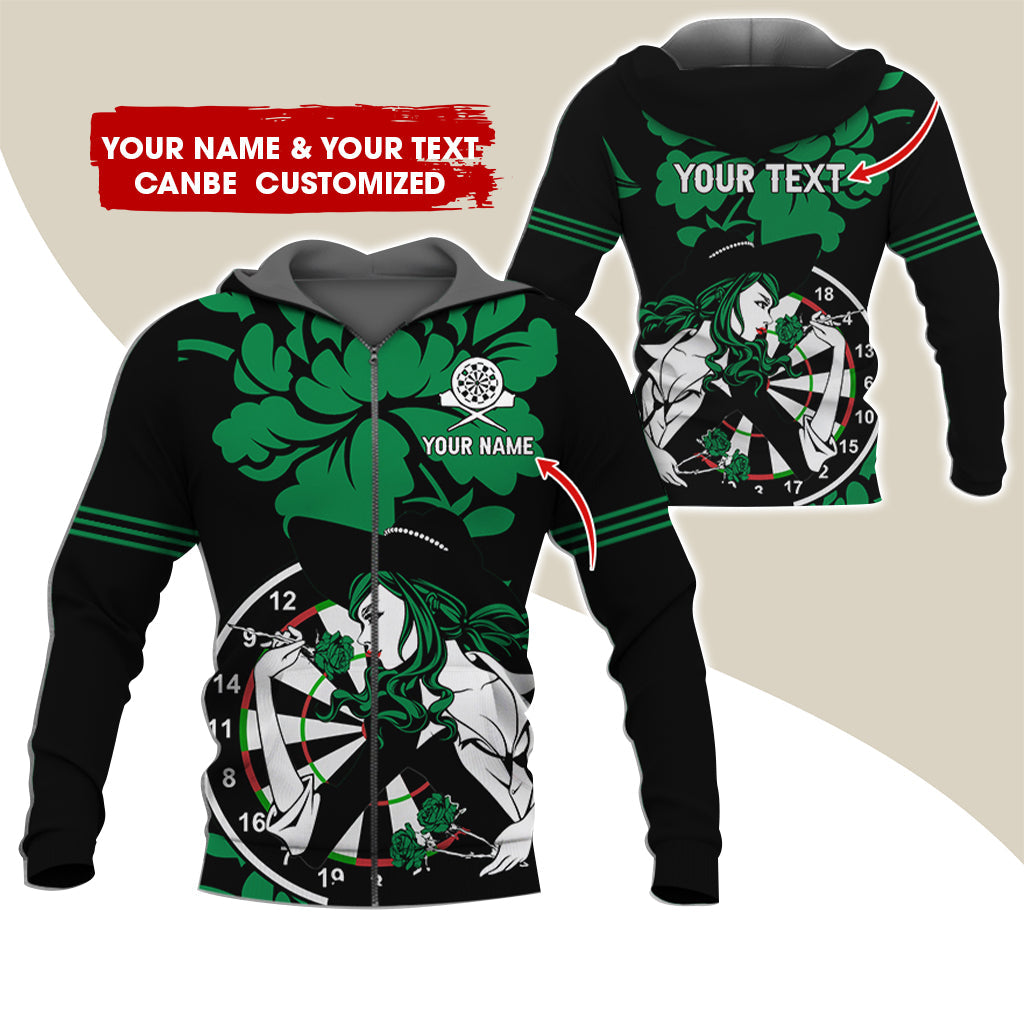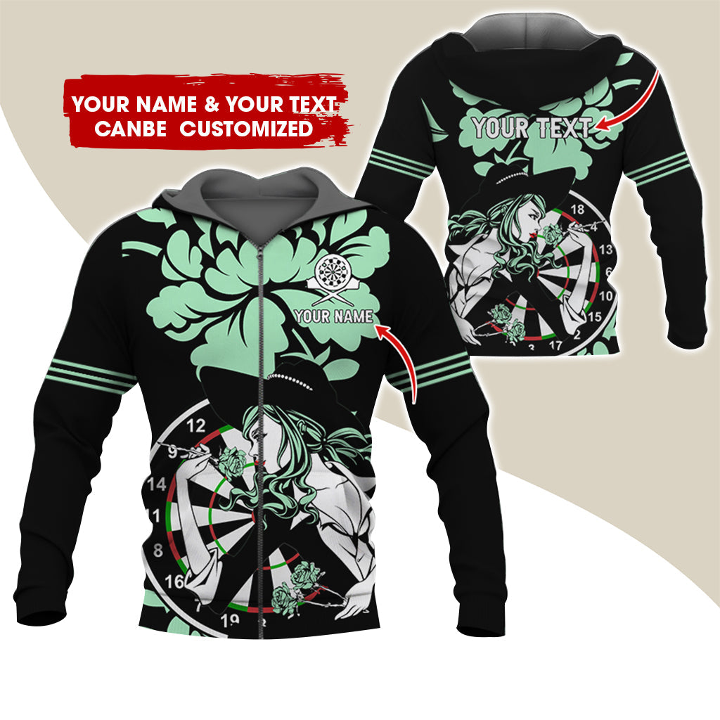 BlueJose Darts Rose Girl Personalized Name, Team Name 3D Zipper Hoodie Hoodie