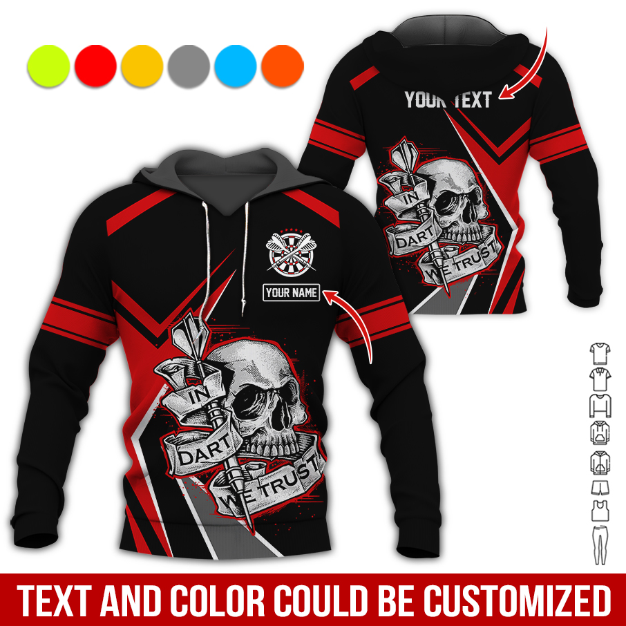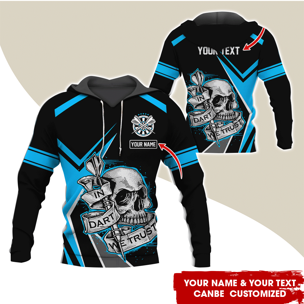 BlueJose Darts Skull Personalized Name, Team Name 3D Hoodie