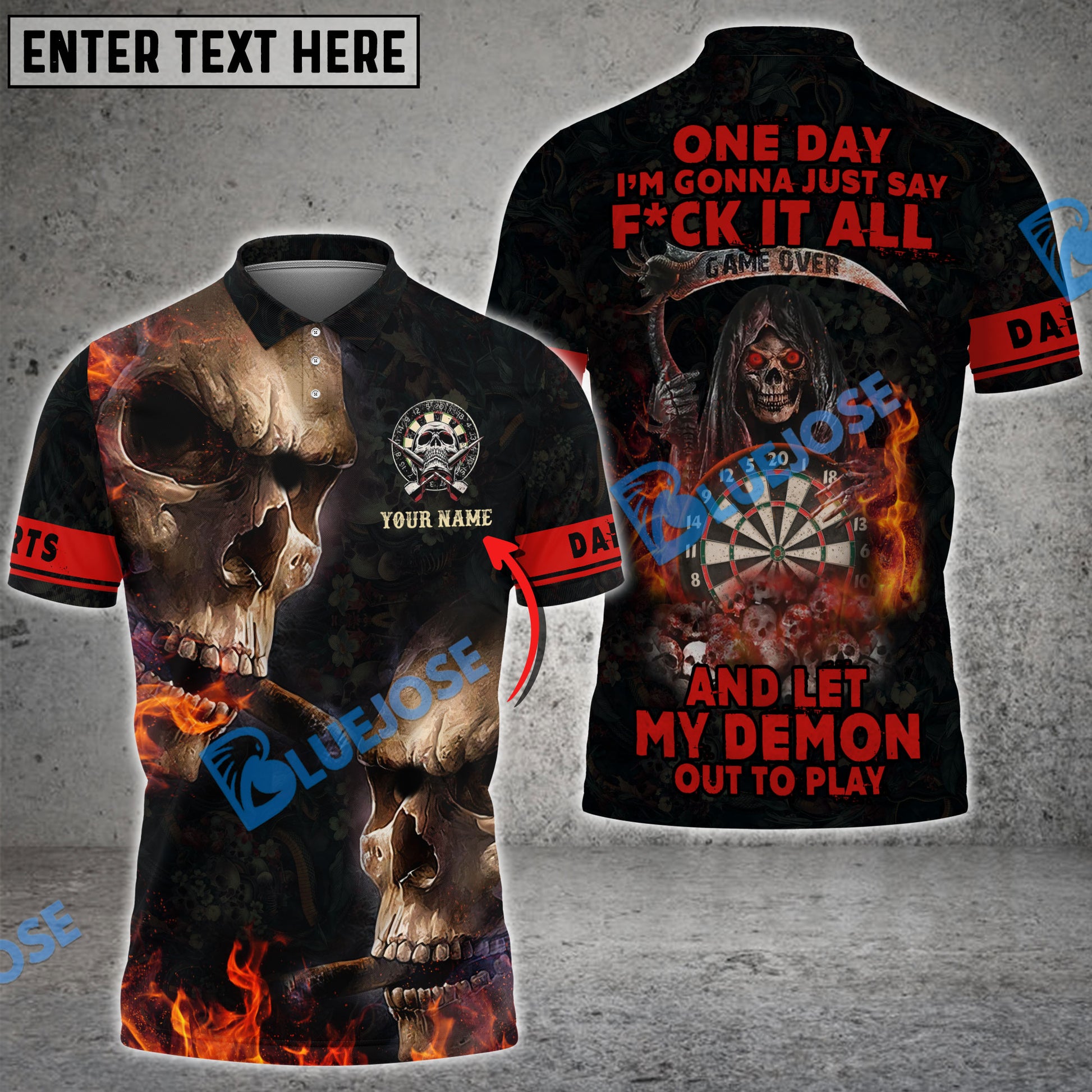 BlueJose Darts Smoke Skull Personalized Name 3D Shirt