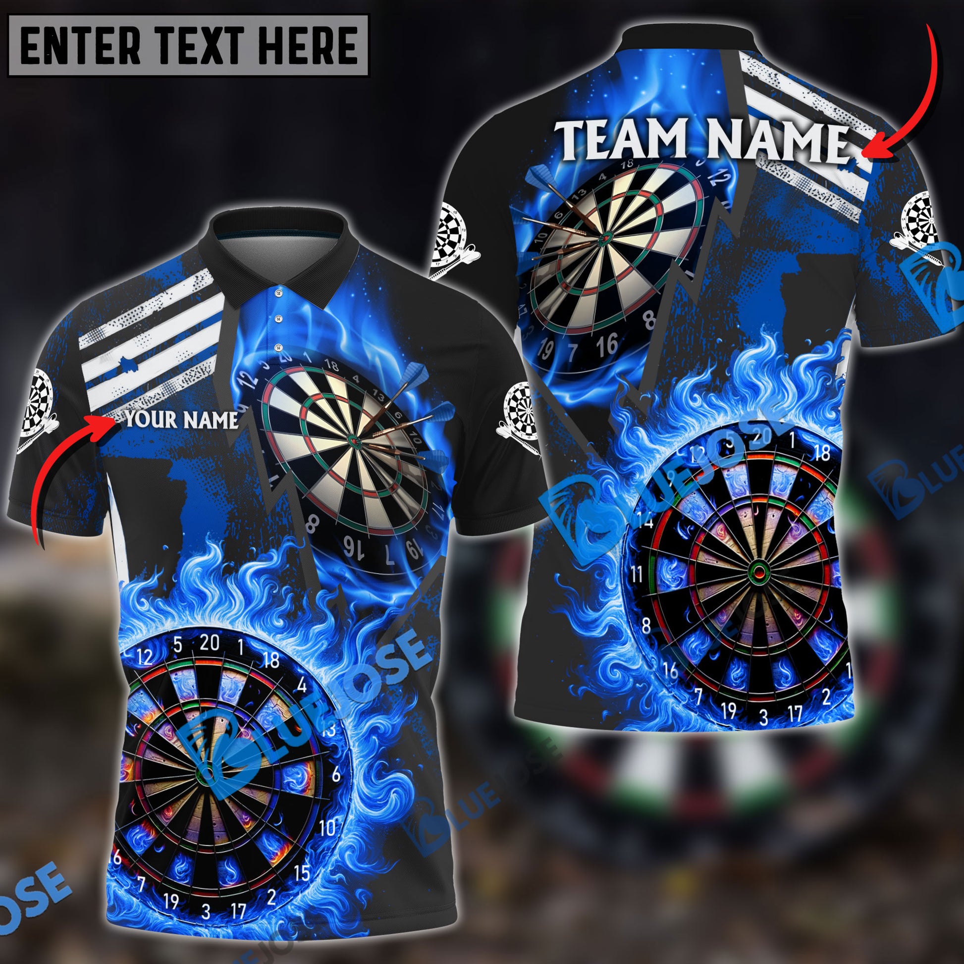 BlueJose Darts Wall Of Flame War Personalized Name, Team Name 3D Shirt ( 5 Colors)