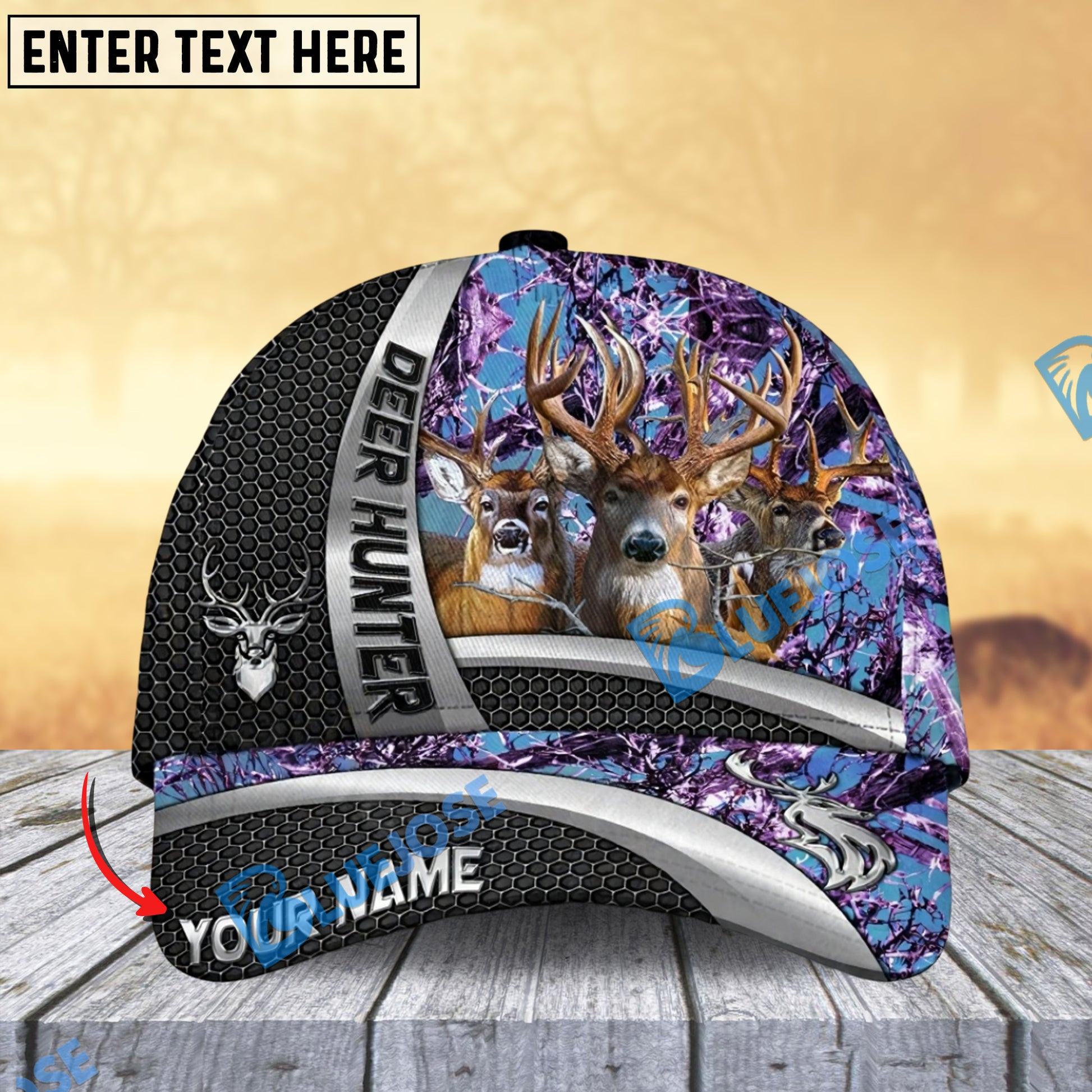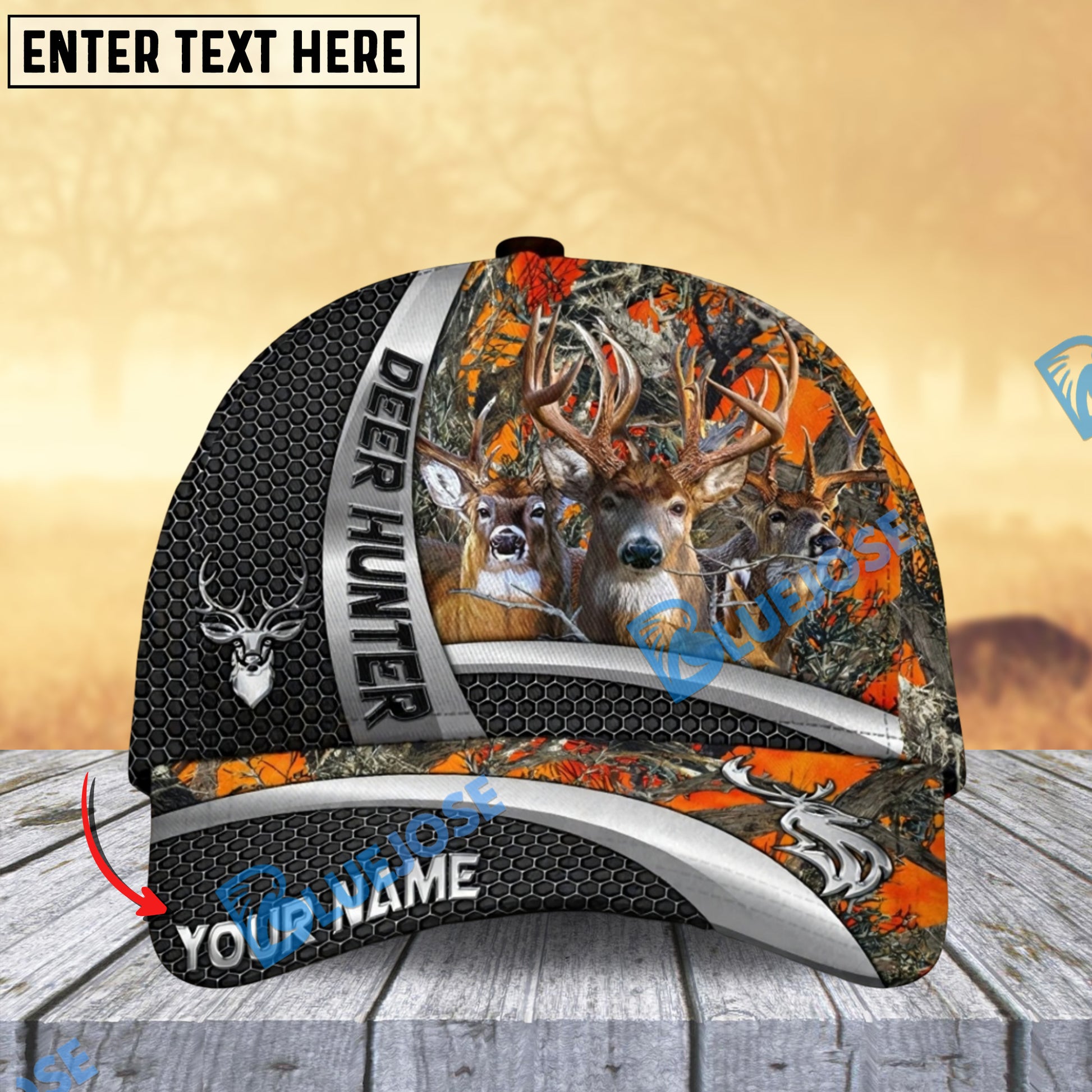 BlueJose Deer Hunter Silver Buck Forest Multicolor Personalized 3D Cap (6 color)