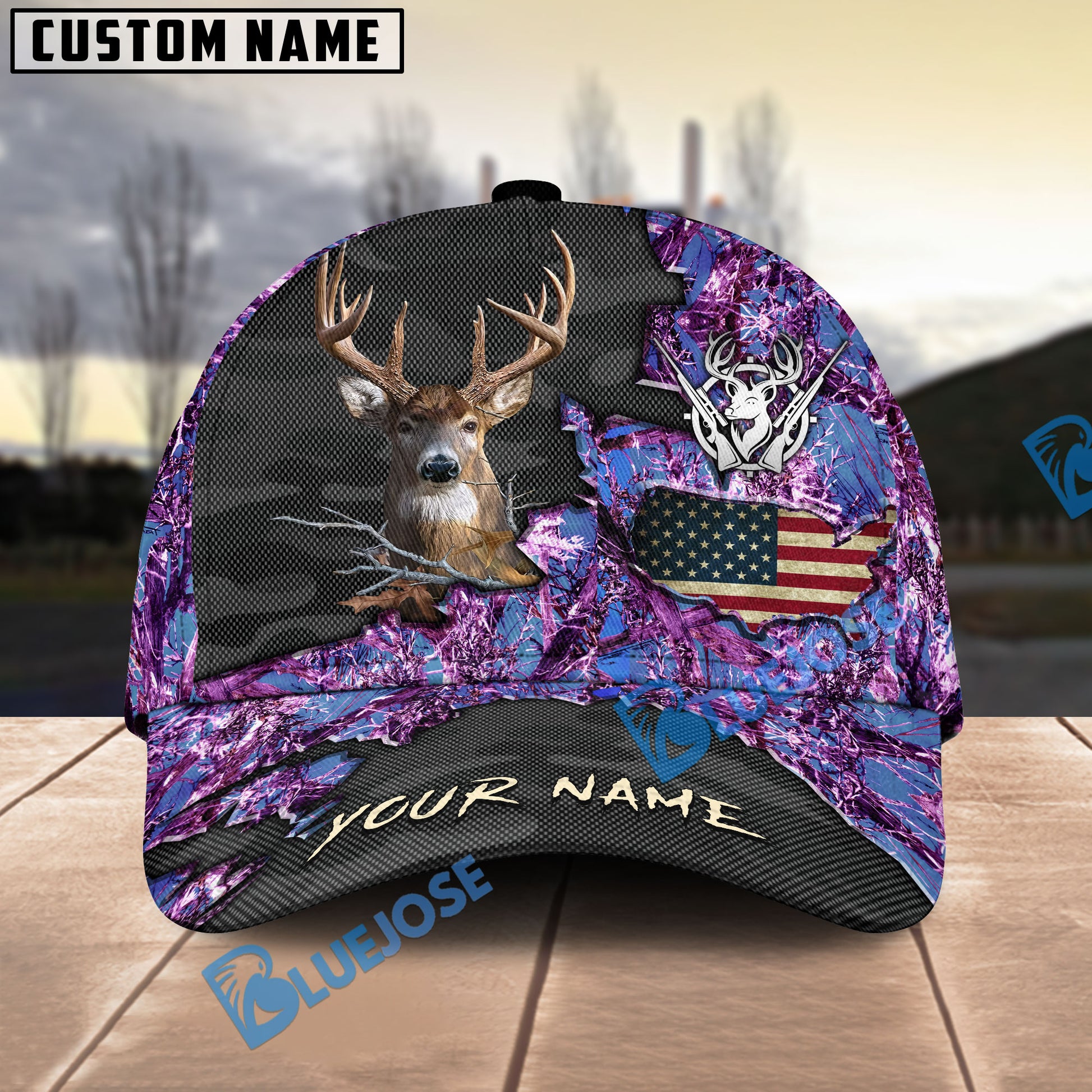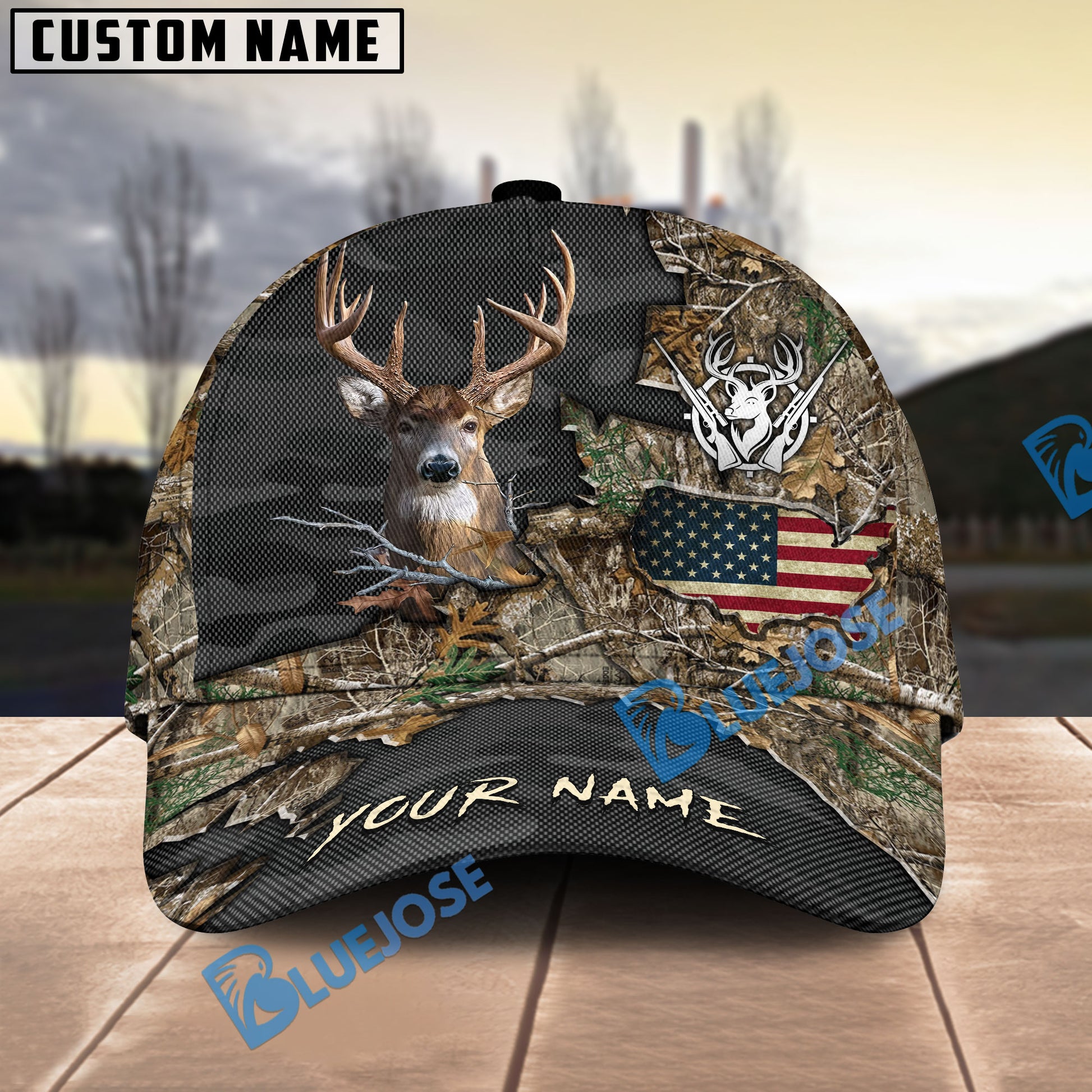 BlueJose Deer Hunting American Flag Camo Multicolor Personalized Cap (6 color)