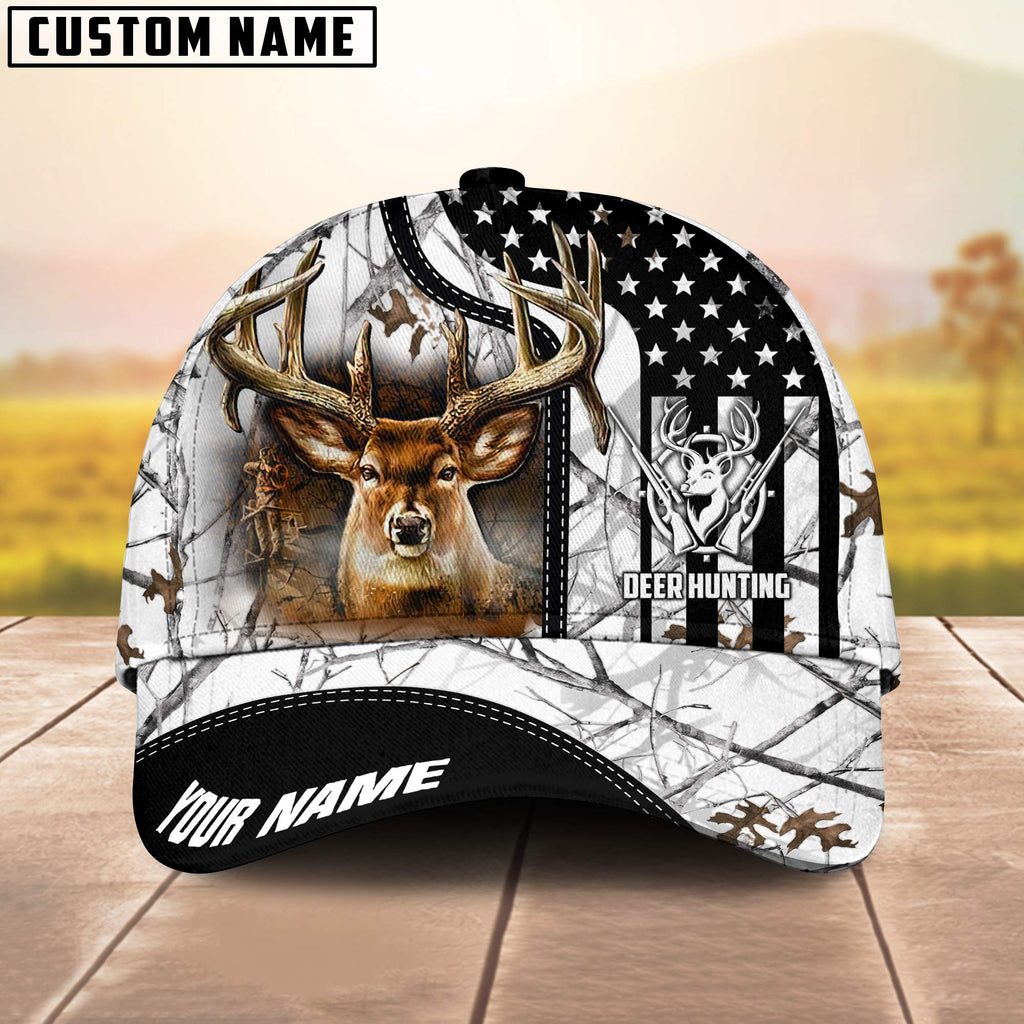 BlueJose Deer Hunting American Flag Camo Pattern Multicolor Personalized Name 3D Cap (4 colors)