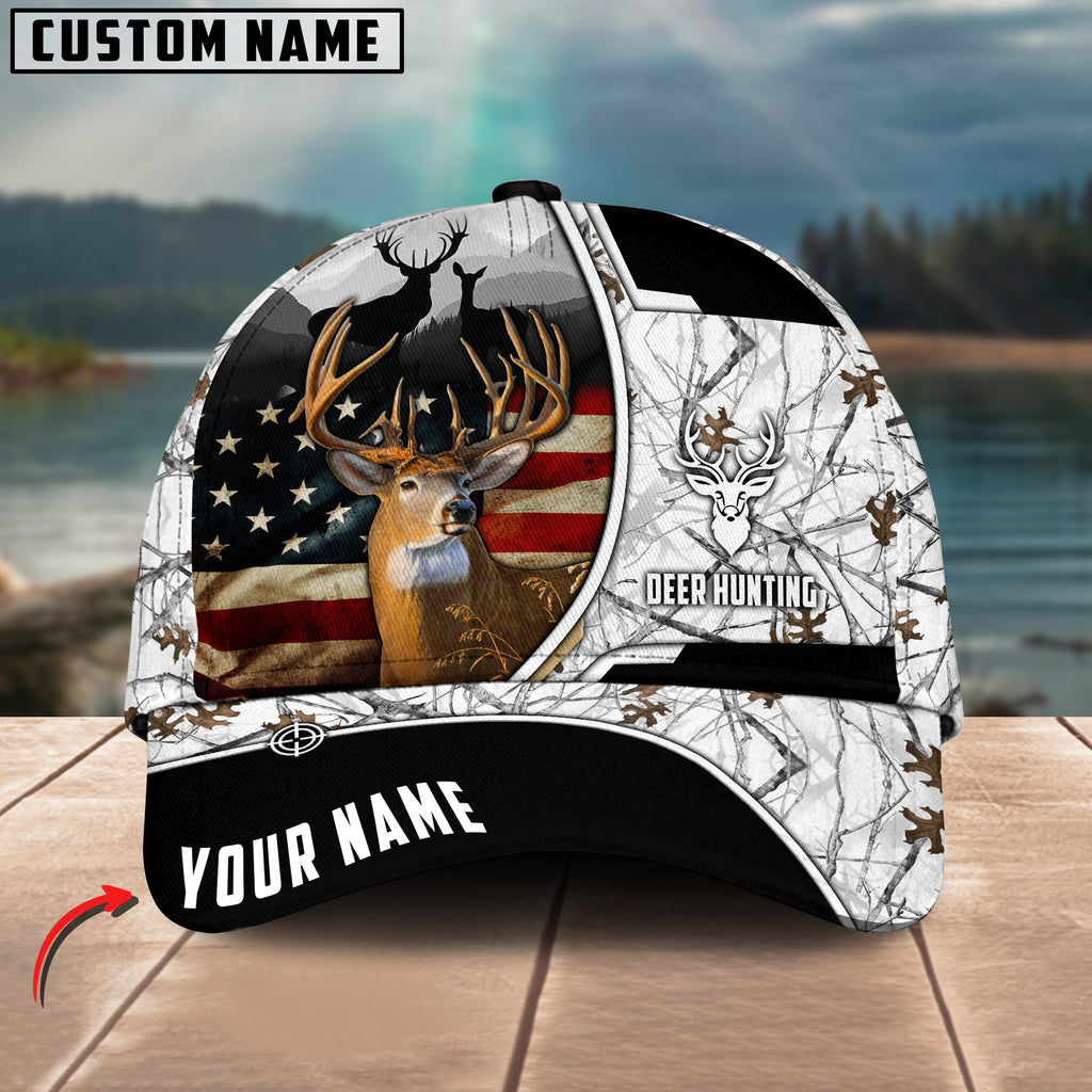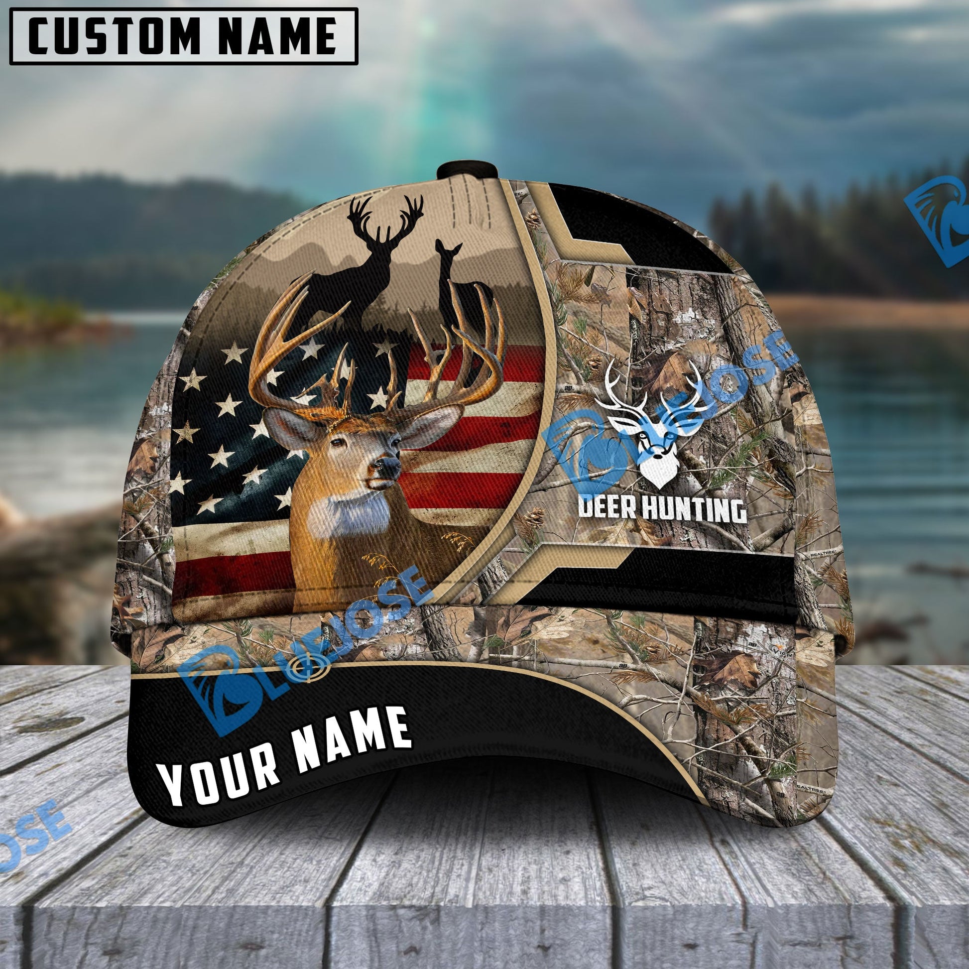 BlueJose Deer Hunting American Flag Pattern Multicolor Personalized Name 3D Cap (4 colors)
