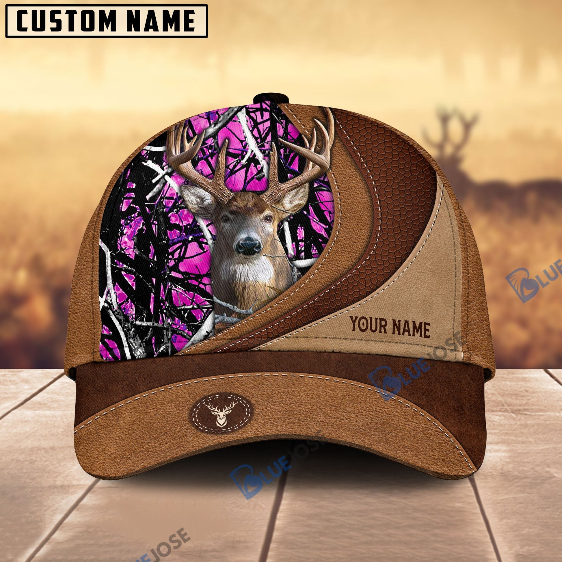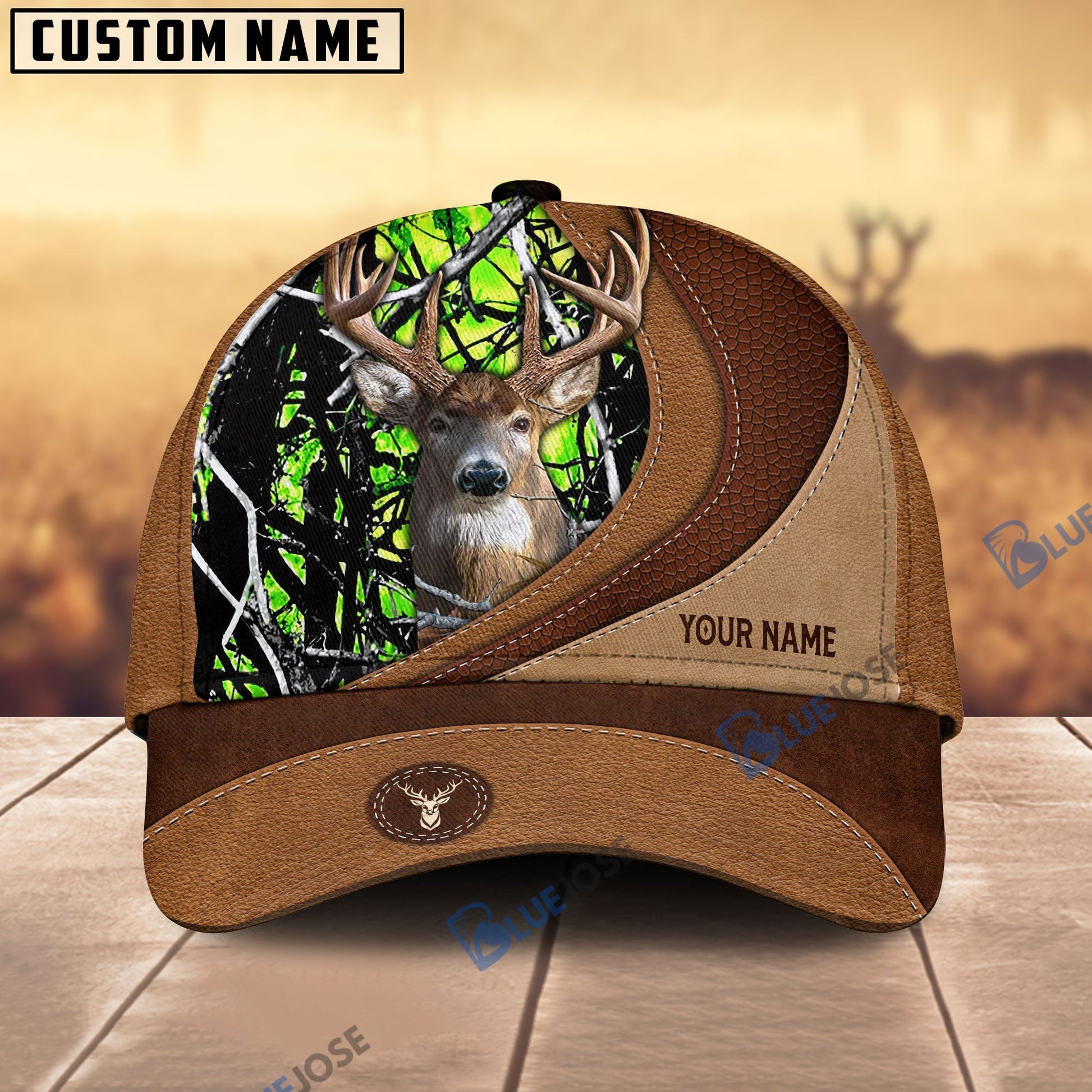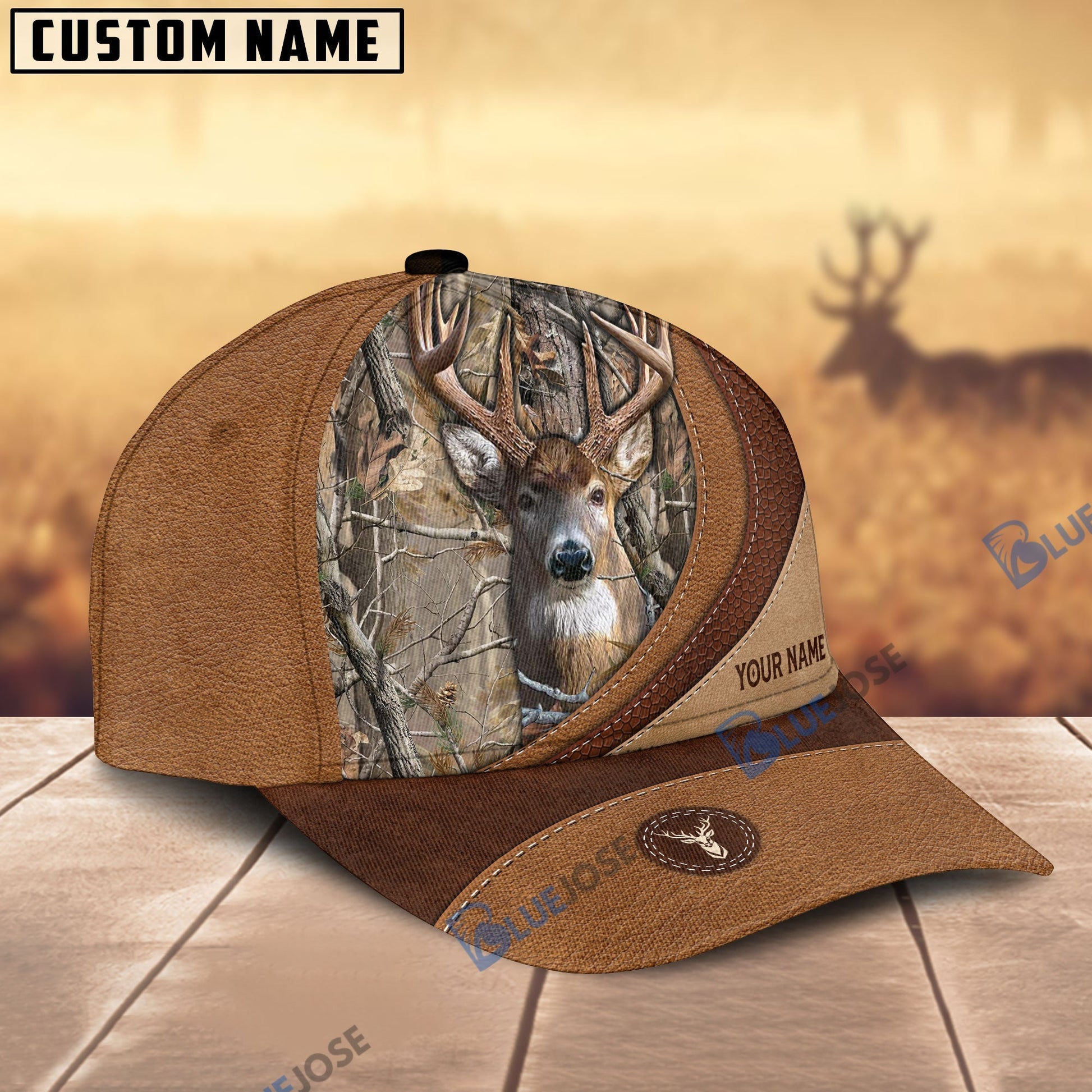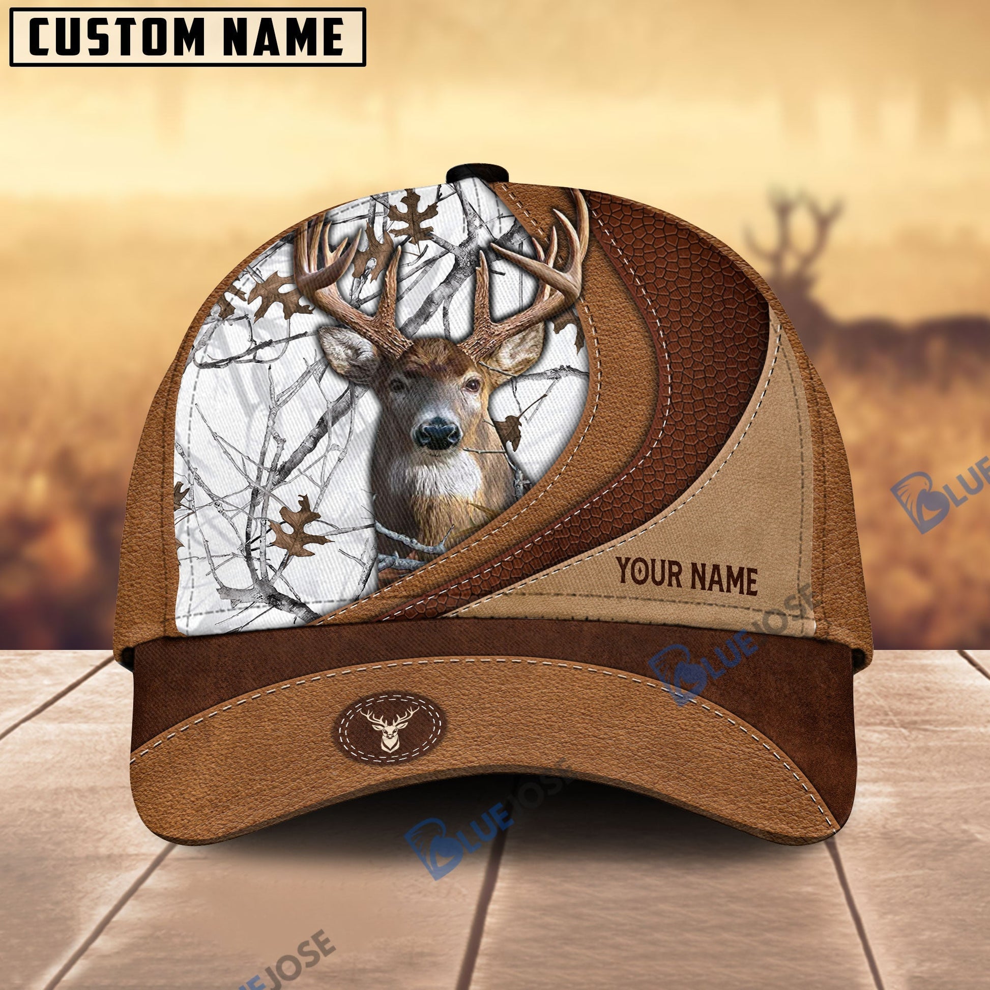 BlueJose Deer Hunting Brown Leather Pattern Personalized Name Cap (5 Colors)
