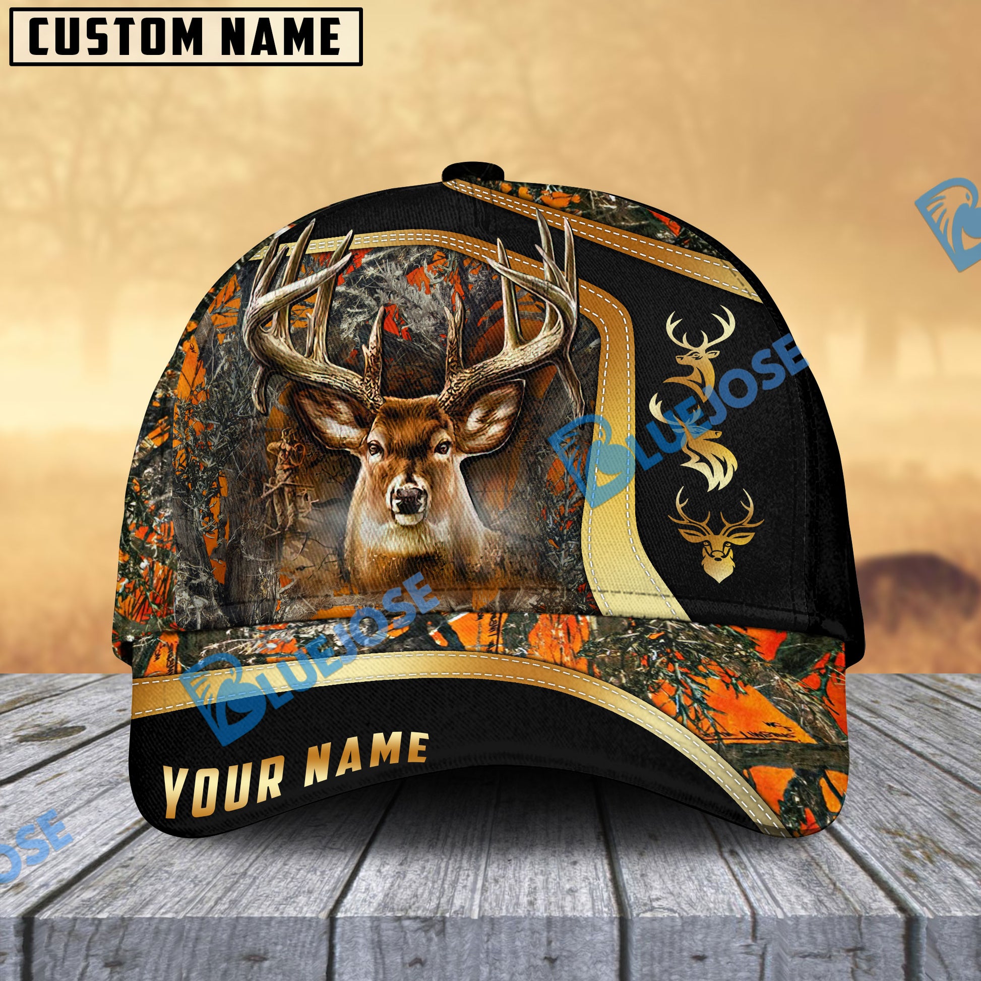 BlueJose Deer Hunting Cap Golden Line Camo Forest Multicolor Personalized Cap