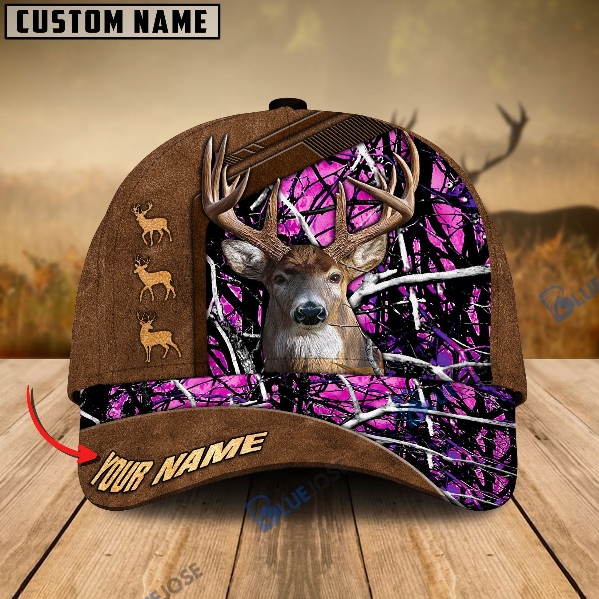 BlueJose Deer Hunting Premium Brown Pattern Personalized Name Cap