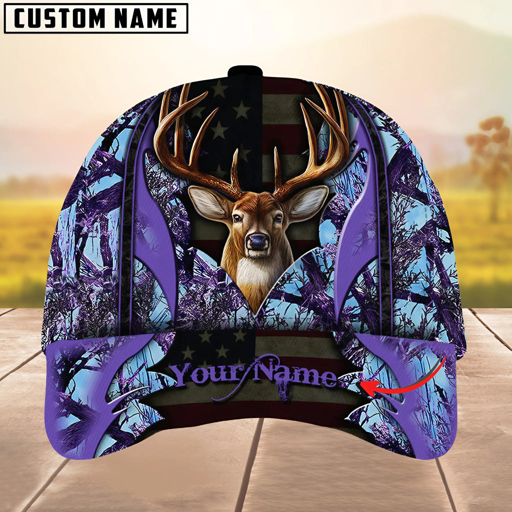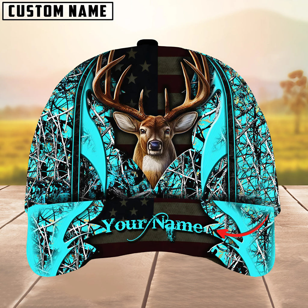 BlueJose Deer Hunting The Best Of Flag Multicolor Option Personalized Name 3D Cap